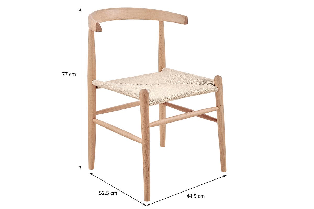 Bring mid-century inspired design to the dining room with a set of natural beech wood chairs with woven rattan seats that will lift and brighten your space.