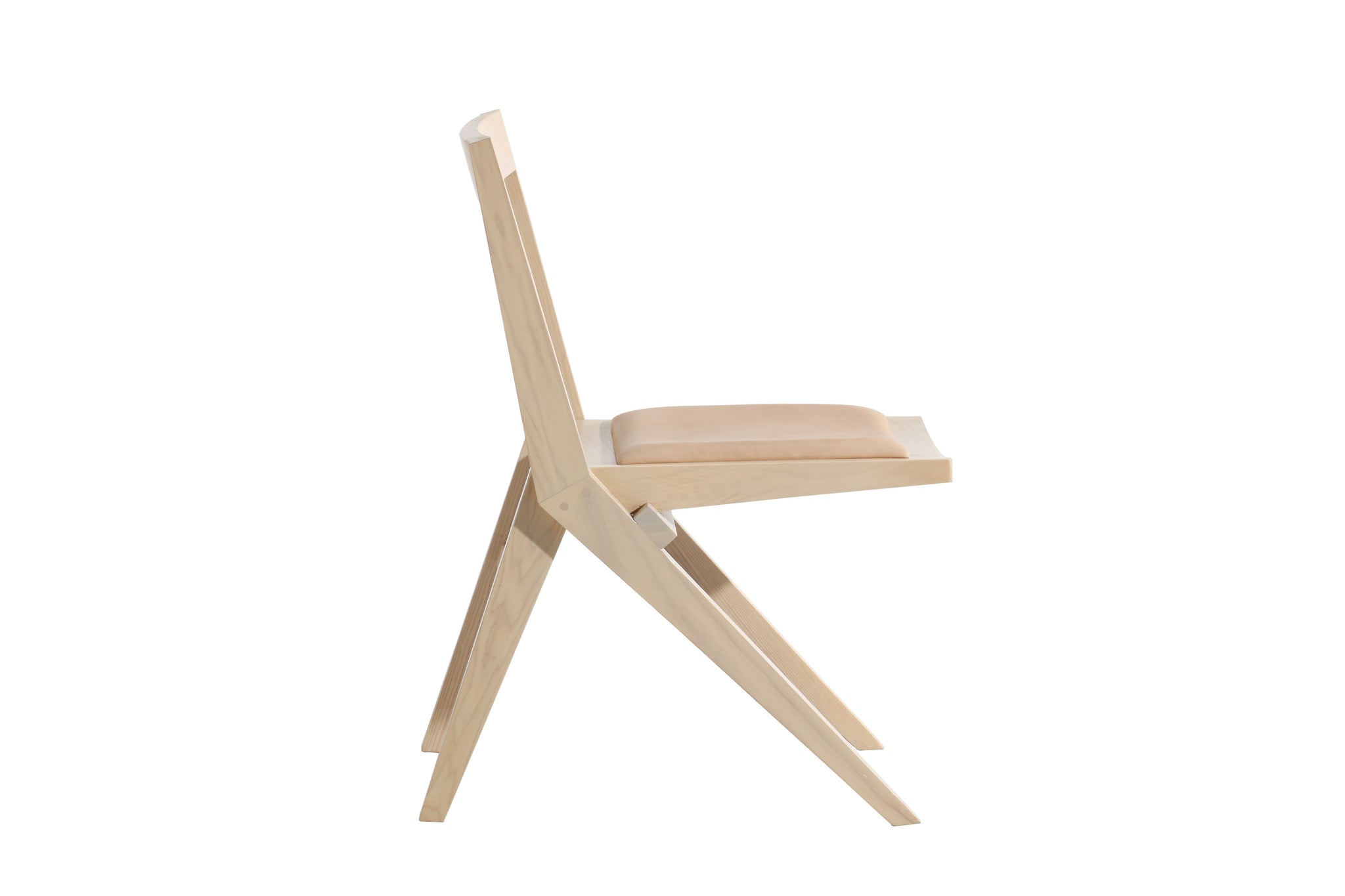Bring a bold minimalist design, clean angles and gorgeous sophistication to your dining room with this dining chair made from stunning white ash with full aniline leather upholstery.