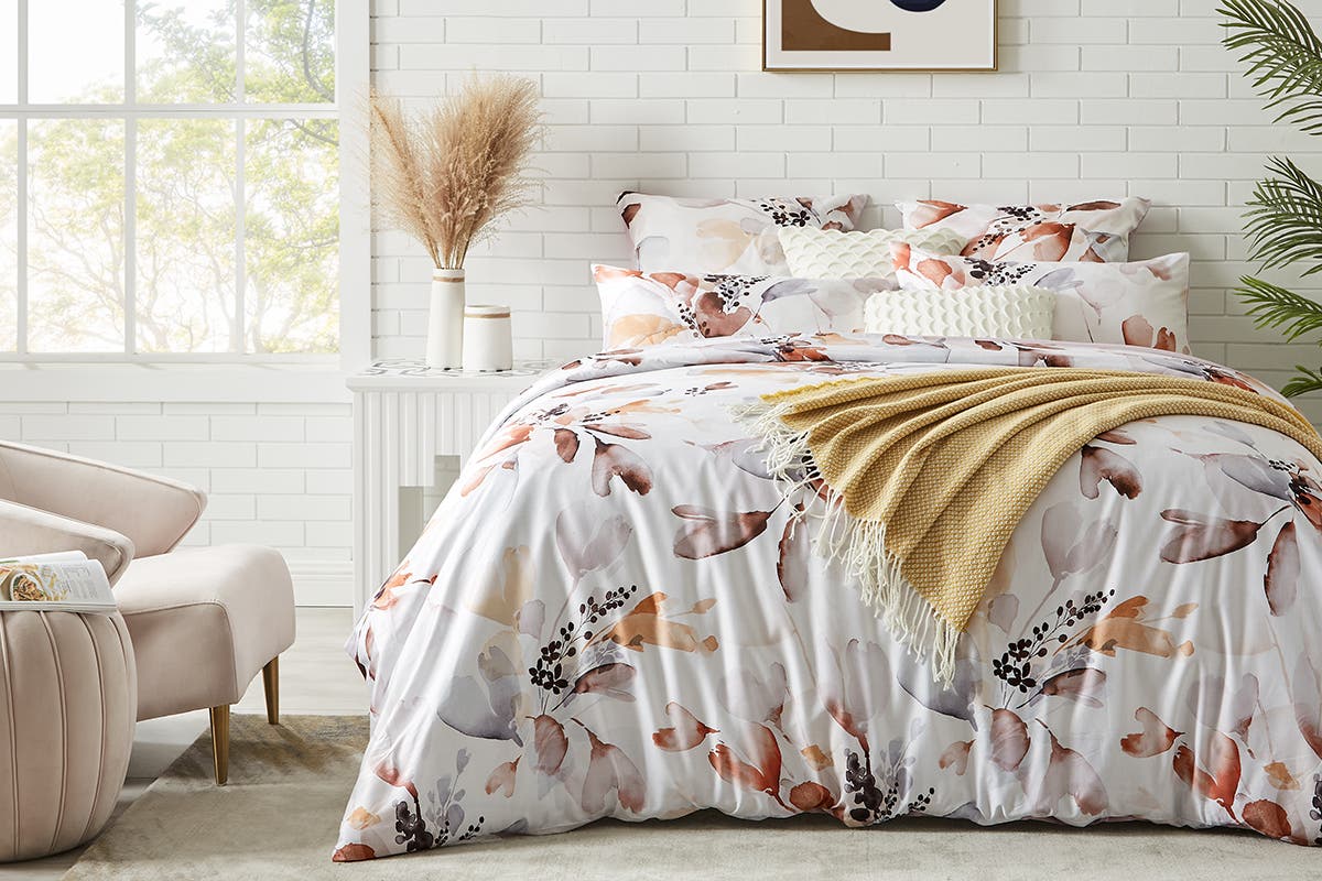 The classy, understated viola pattern of these quilt covers add elegance to your bed linen collection and its versatile neural base colour complements various bed sheet sets and bedroom decors.