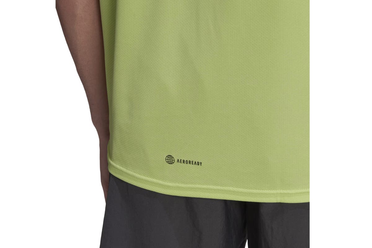 Knock your training goals out in total comfort in the Adidas Men’s Designed 2 Move Tee. Adidas AEROREADY manages your body’s moisture to keep you dry and in the zone.