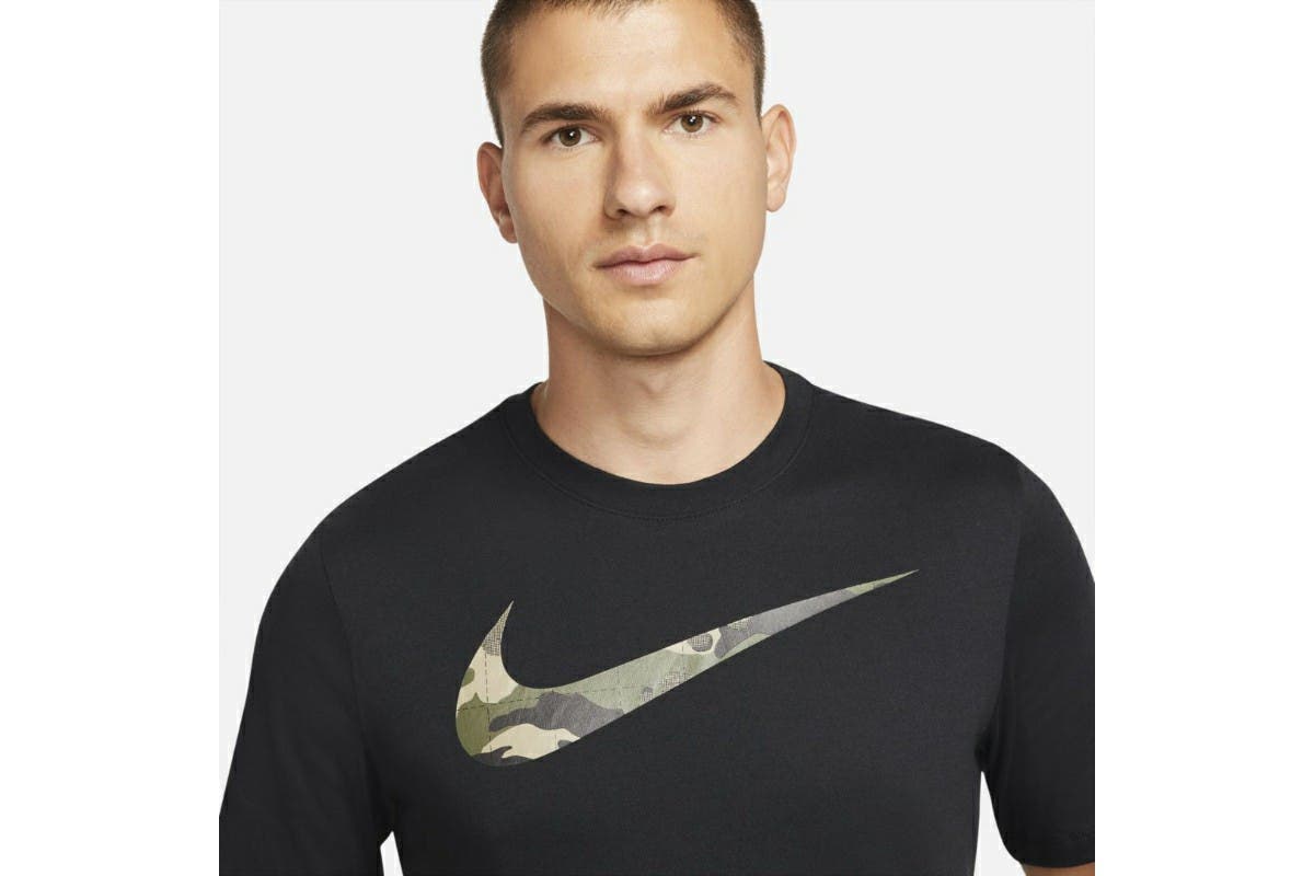 With Dri-FIT technology, the Nike Men’s Dri-FIT Camo Fill GFX Tee keeps you dry and comfortable during your workouts.