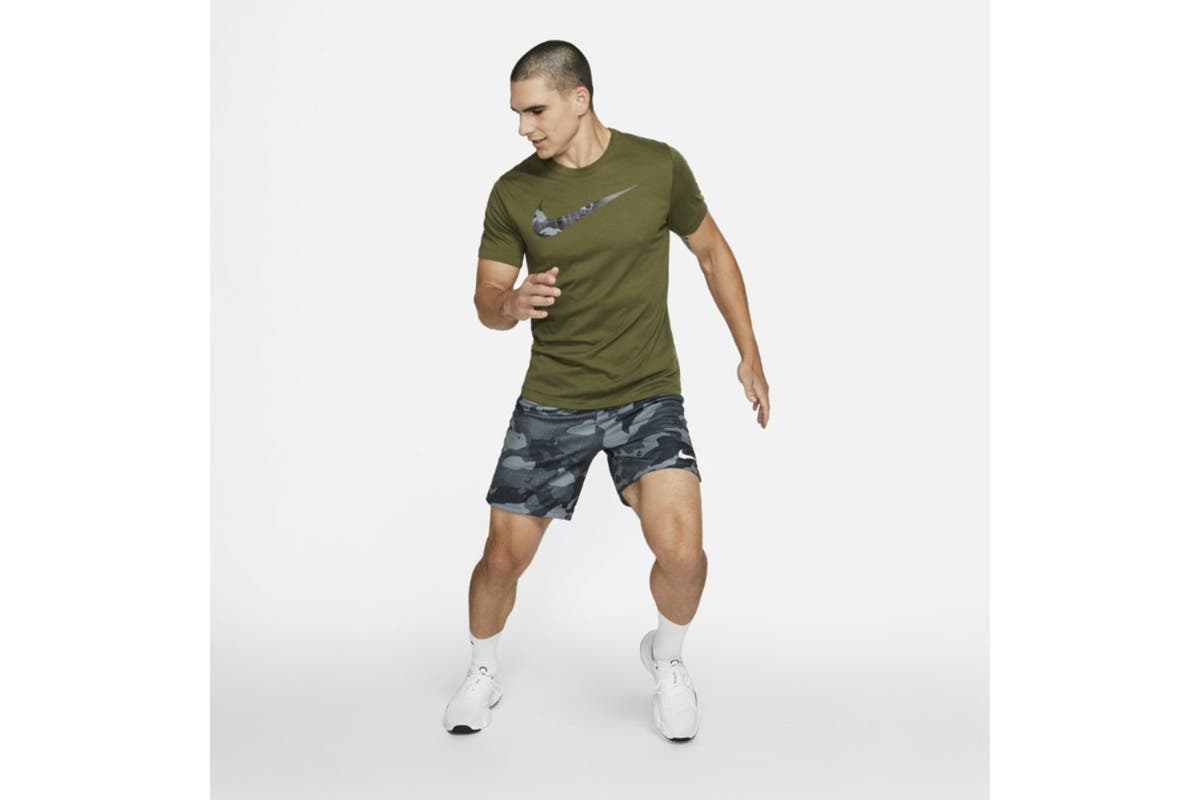 The Nike Men’s Dri-Fit Camo Fill Graphics Tee keeps you dry during workouts at all levels with its soft fabric that wicks away sweat. Create a commanding look with a Swoosh logo and camo fill.