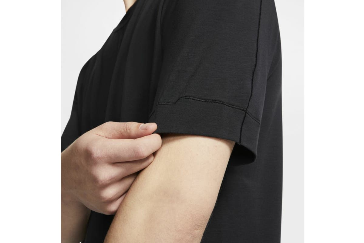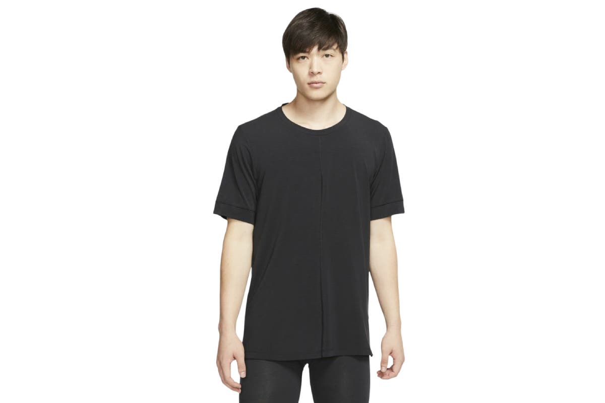 The Nike Men’s Dri-FIT Short Sleeve Top feels soft and light for comfort that lasts beyond the mat. With plenty of stretch and split hems, you can move freely from pose 1 to done.