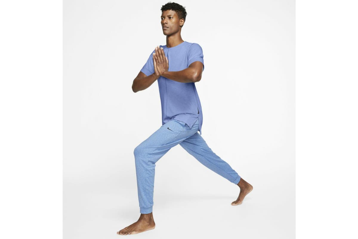 The Nike Men’s Dri-FIT Short Sleeve Top feels soft and light for comfort that lasts beyond the mat. With plenty of stretch and split hems, you can move freely from pose 1 to done.