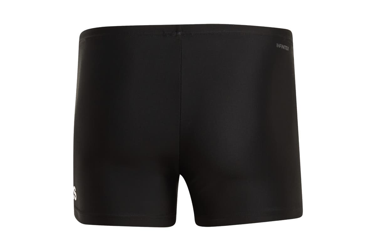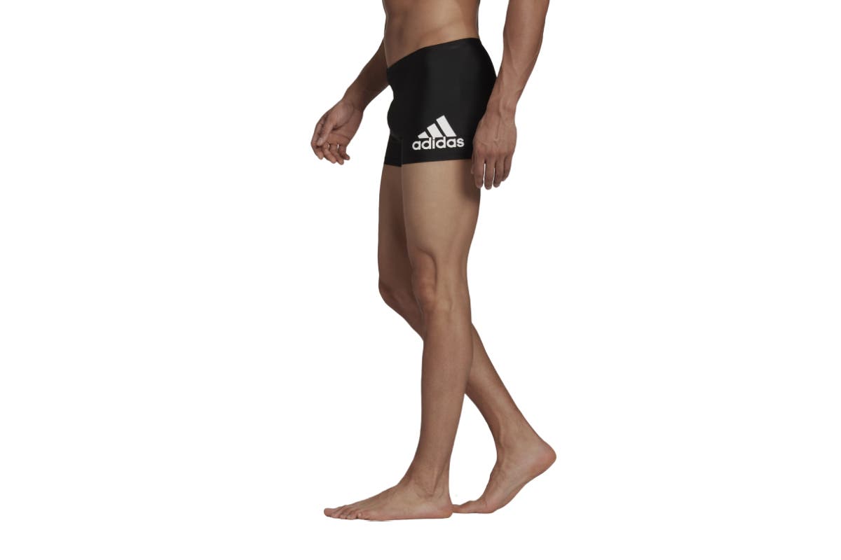 Adidas Men’s Fit Box Swim Shorts are designed for everyday lap swimming. These shorts are made of chlorine-resistant fabric using yarn spun from reclaimed nylon waste. A drawcord-adjustable waist secures the fit.