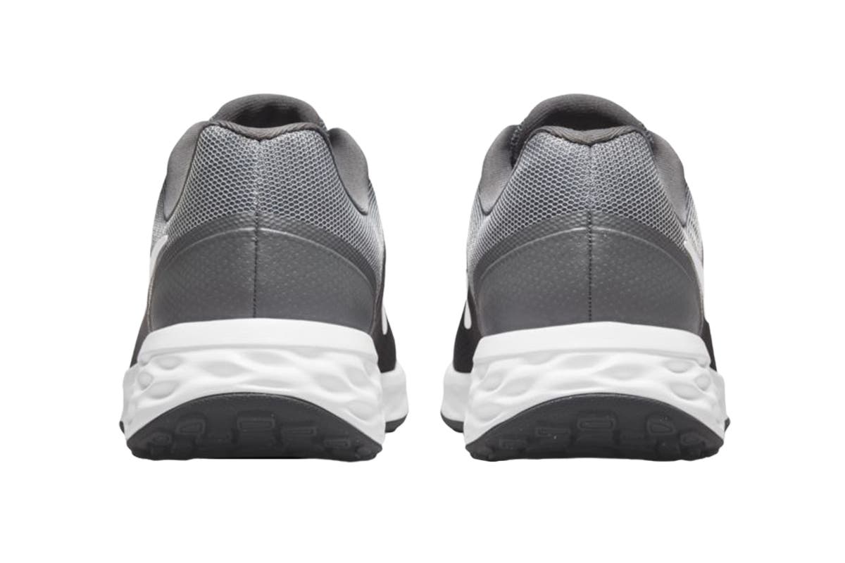 A foam midsole delivers a softer ride than the Revolution 5. The outsole has a computer-generated design that creates a natural piston effect as you run, providing more cushioning and flexibility. They combine for durable traction.