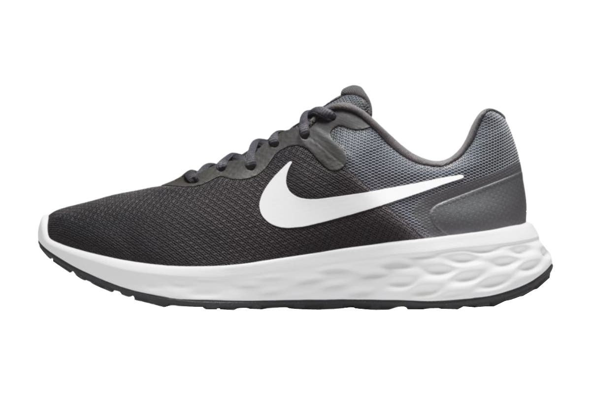 A foam midsole delivers a softer ride than the Revolution 5. The outsole has a computer-generated design that creates a natural piston effect as you run, providing more cushioning and flexibility. They combine for durable traction.