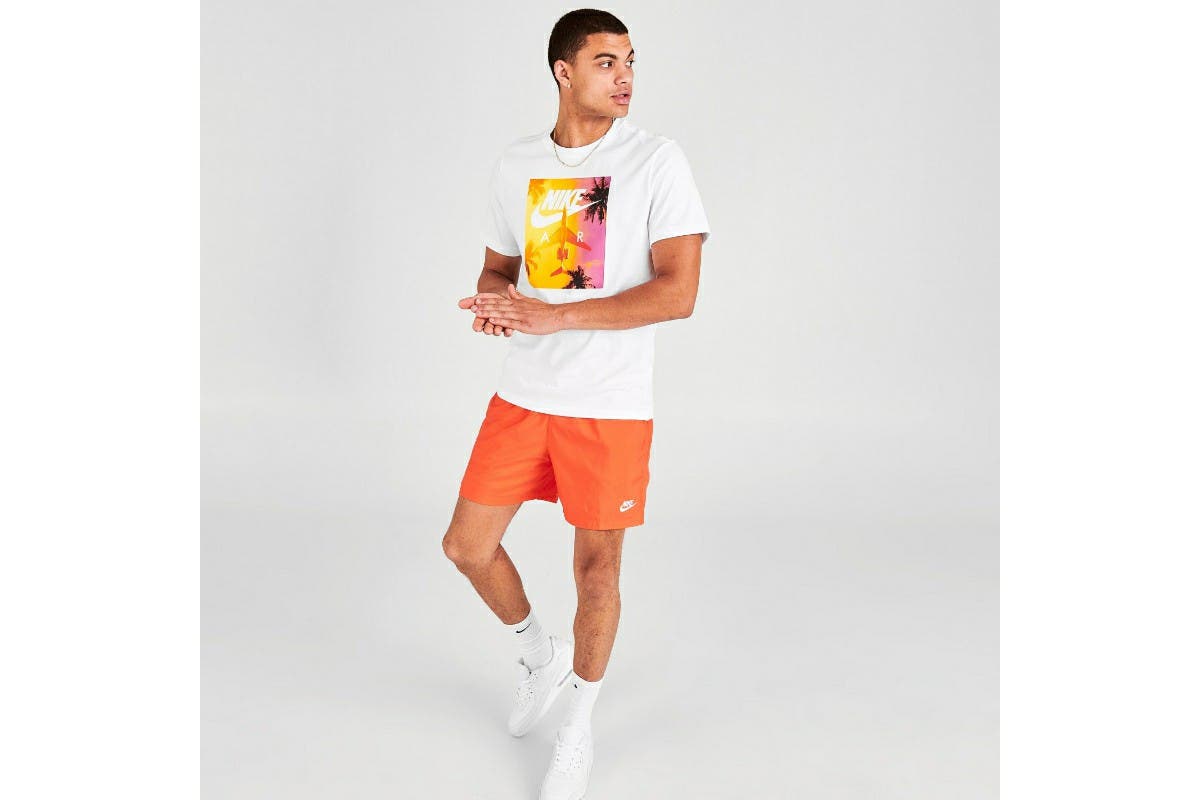 The Nike Men’s Nike Sportswear Swoosh By Air Photo Tee’s soft everyday cotton construction celebrates the Nike Air logo with a photo mashup. Its classic fit provides a familiar feel perfect for everyday wear.