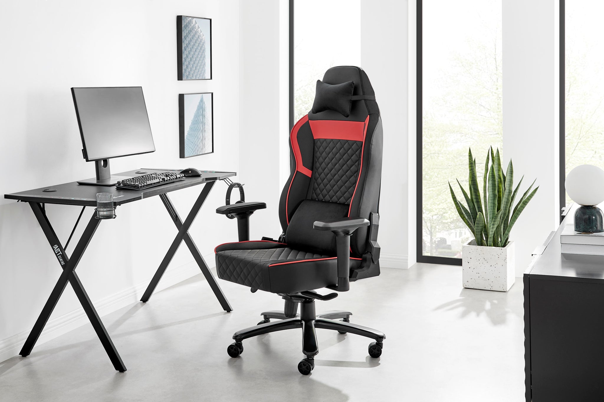 Get the upper hand on your competition with a gaming chair that offers style and support to your play, with moulded foam for ergonomic comfort, an adjustable headrest, and lumbar support to keep you at your peak performance.