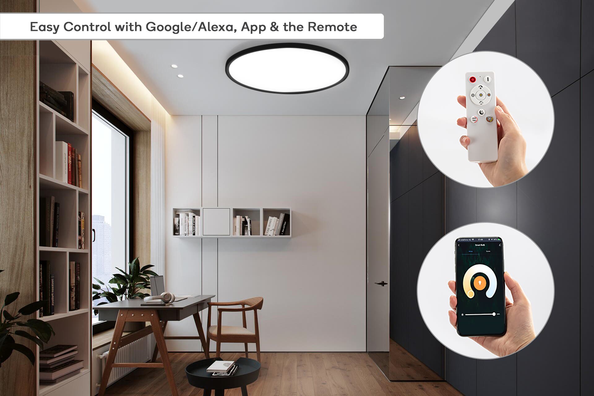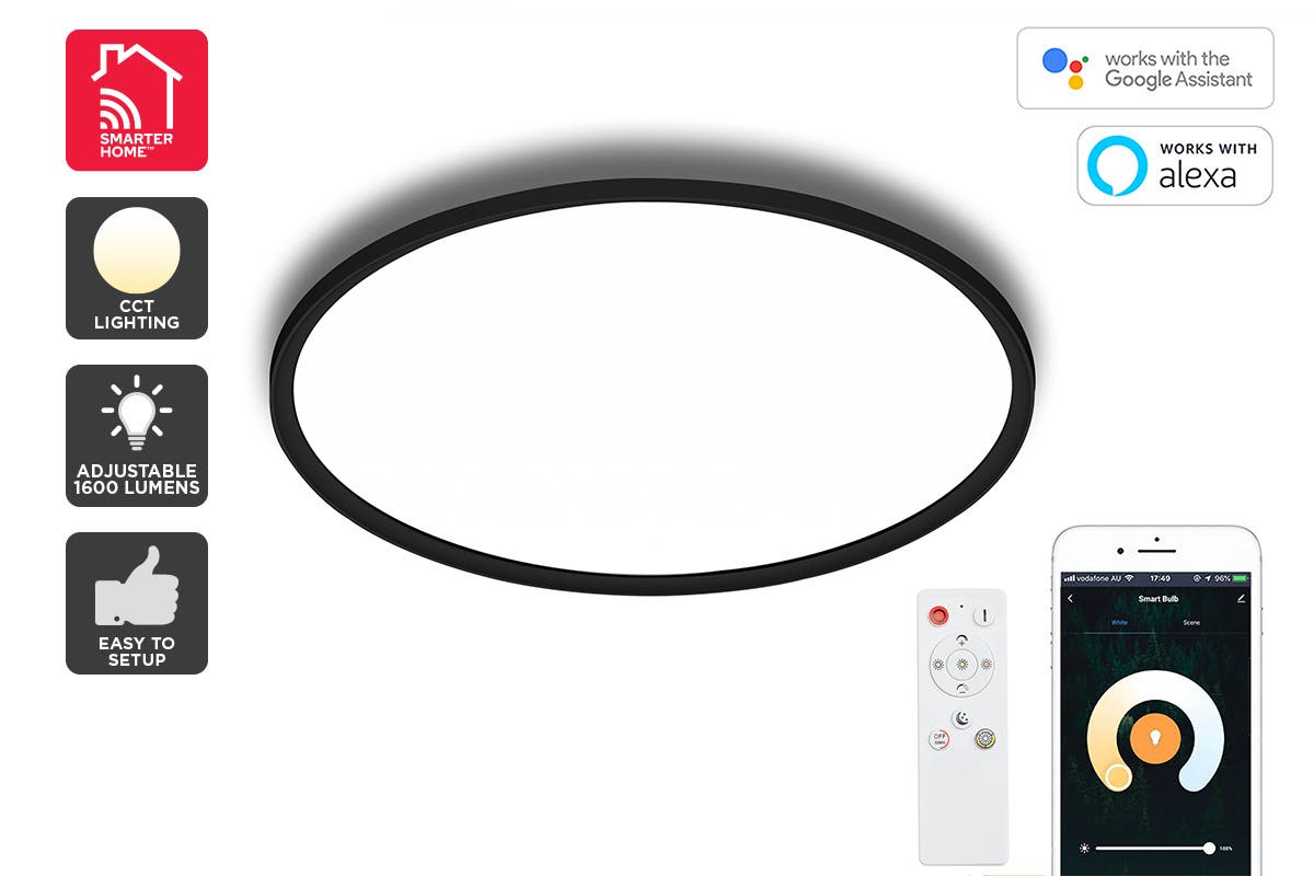 Make your home truly modern with a smart ceiling light you can control from your smartphone, Google Home or Amazon Alexa with the Kogan SmarterHome™ 40W 90+ CRI Natural Cool & Warm White Ceiling Light (520mm Round, Black).
