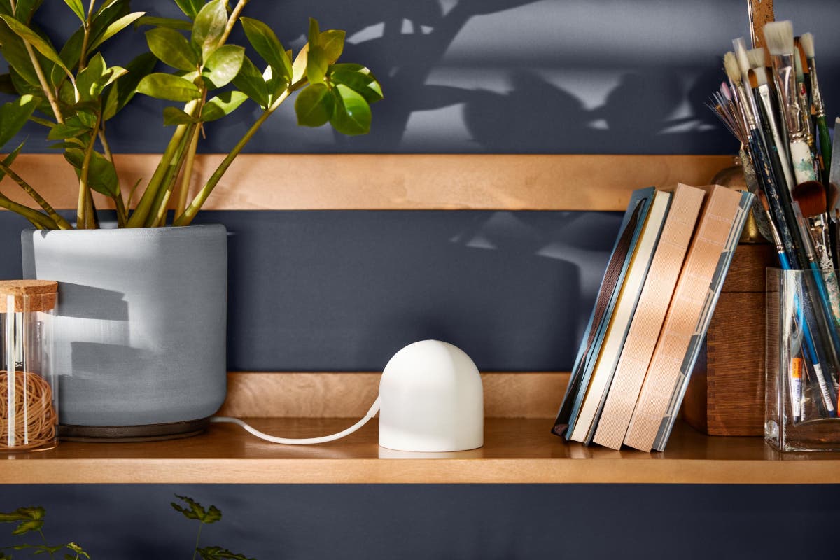 Use the Google Nest Cam Tabletop Stand to place Nest Cam on a shelf so that you don’t have to worry about charging.