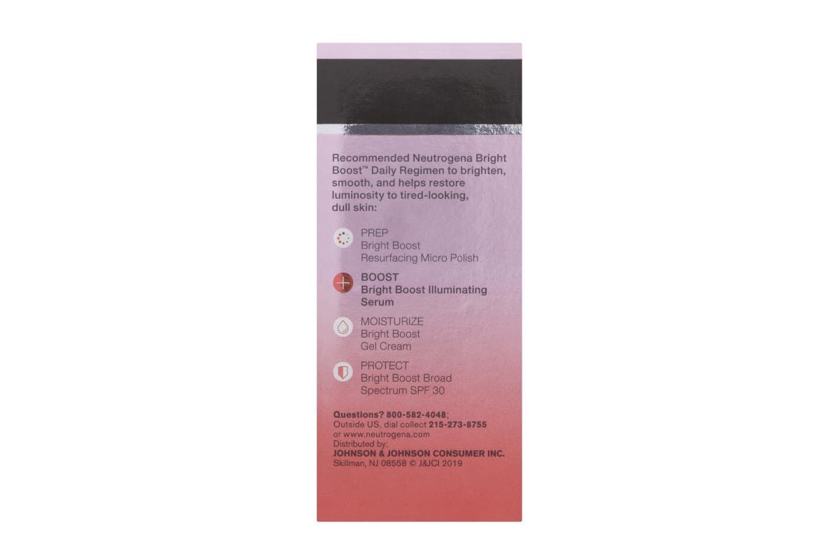 The Neutrogena Bright Boost Illuminating Serum helps reduce visible imperfections and illuminates skin around your face for improved tone, texture and clarity.
