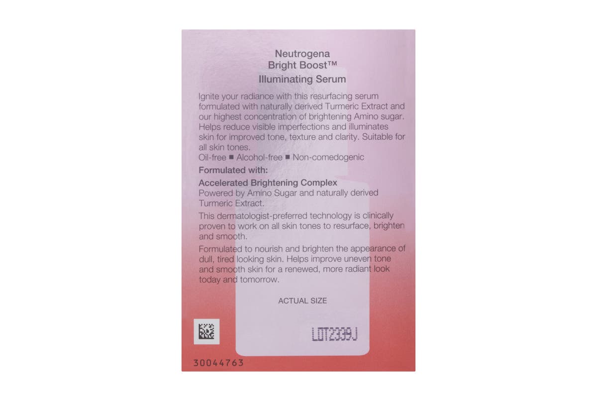 The Neutrogena Bright Boost Illuminating Serum will ignite your radiance with this resurfacing serum formulated with naturally derived turmeric extract and Neutrogena highest concentration of brightening amino sugar.