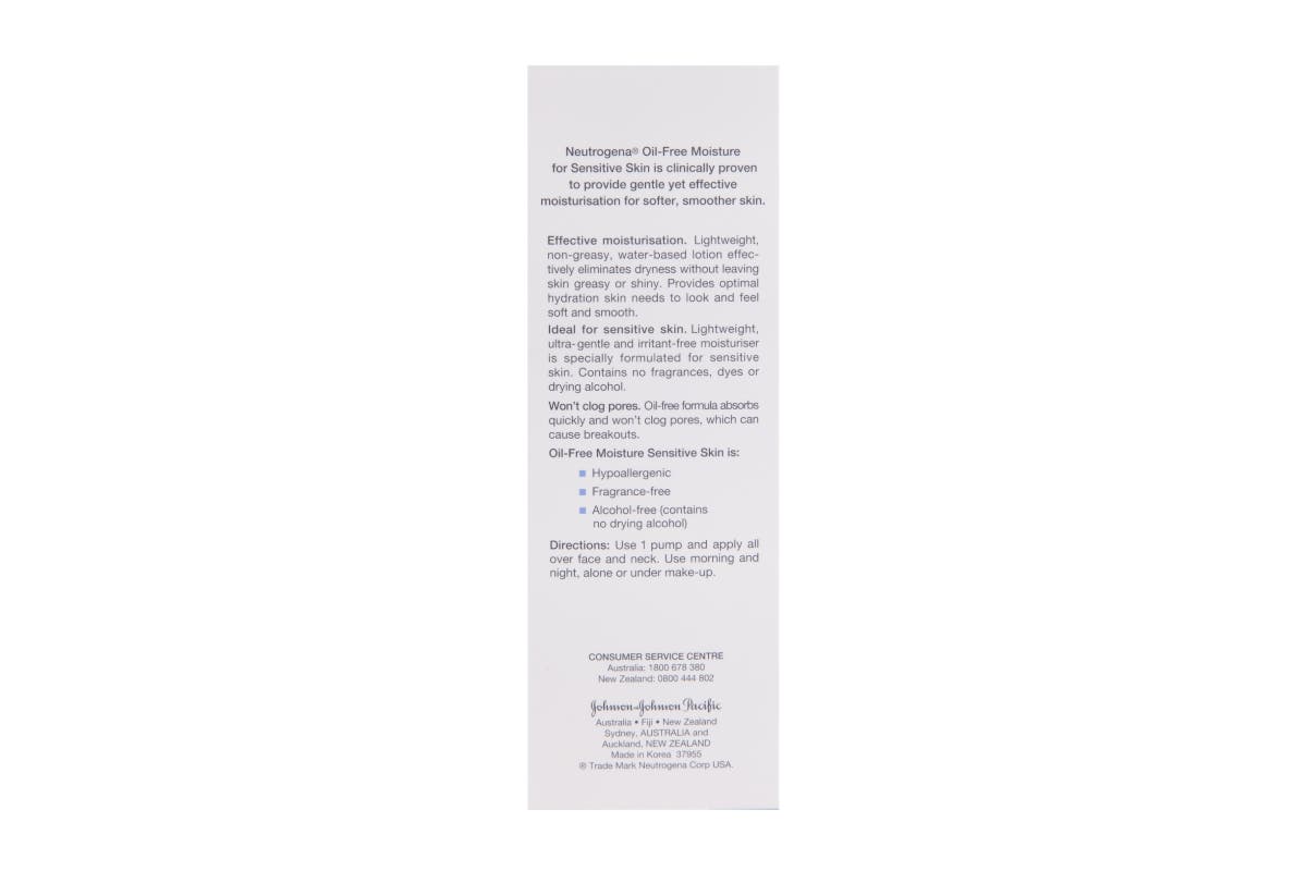 The Neutrogena Oil Free Sensitive Skin Moisturiser is specially formulated for sensitive skin and provides the optimal hydration that skin needs to look and feel soft and smooth. It contains no fragrances, dyes or drying alcohol.