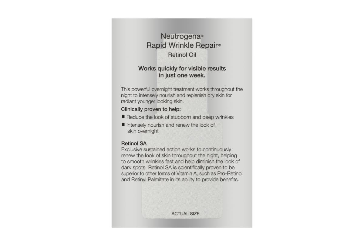 The Neutrogena Rapid Wrinkle Repair Retinol Oil is a powerful overnight treatment works throughout the night to intensely nourish and replenish dry skin for radiant younger looking skin.