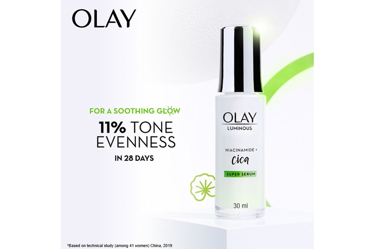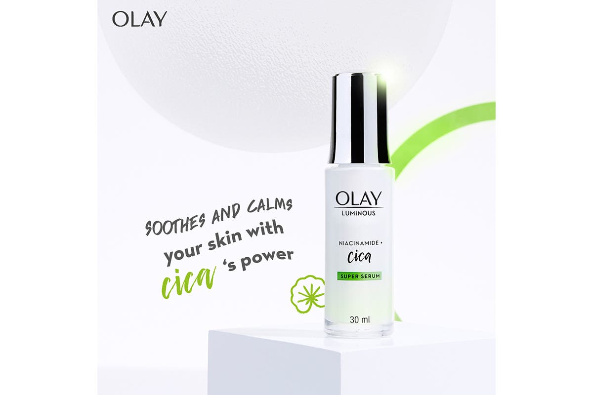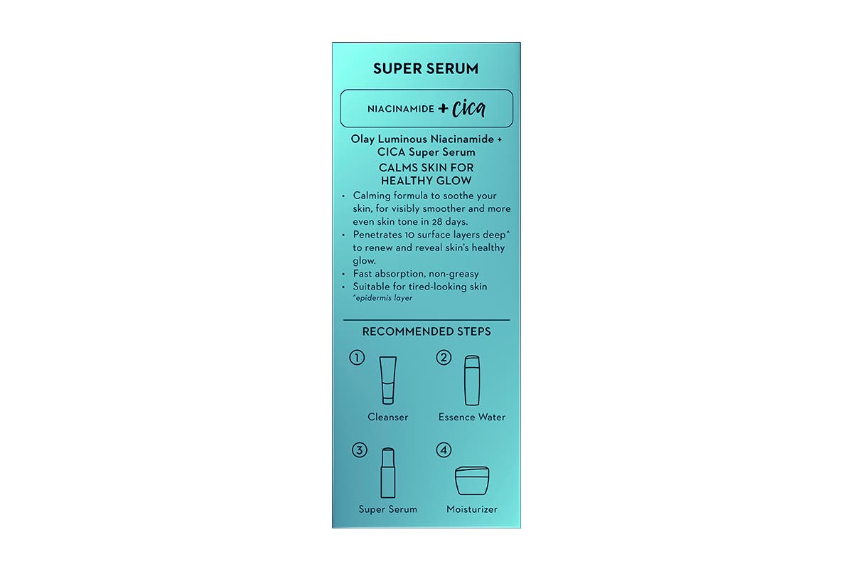 The Olay Luminous Niacinamide+ Cica Super Serum soothes skin for a healthy glow. The calming formula is non- greasy and absorbs quickly while penetrating 10 skin surface layers deep to renew and reveal skin’s healthy glow.