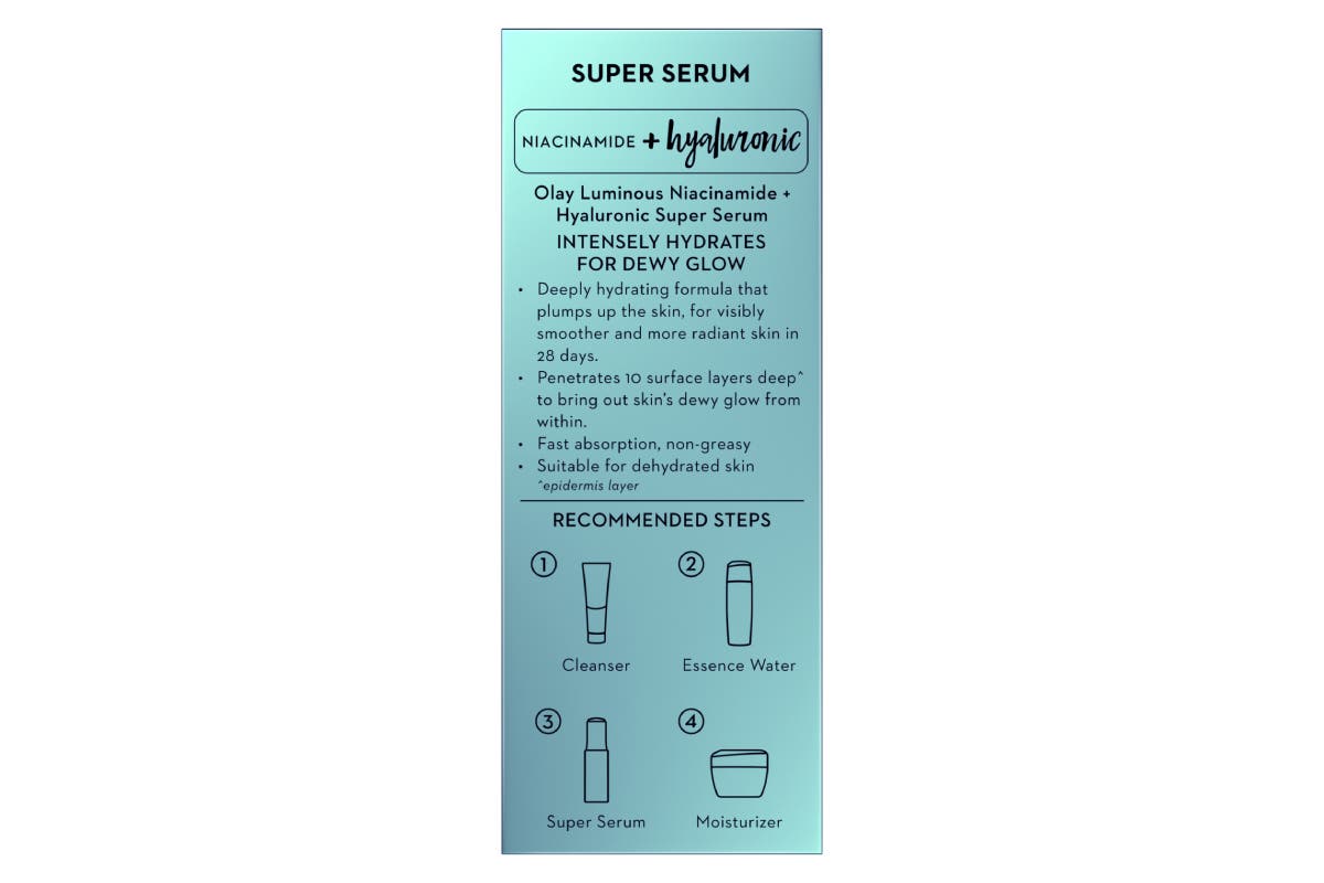 Quench your skins thirst with the Olay Luminous Niacinamide+ Hyaluronic Super Serum that intensely hydrates for a dewy glow.