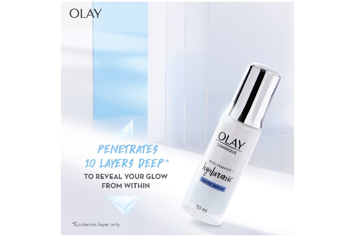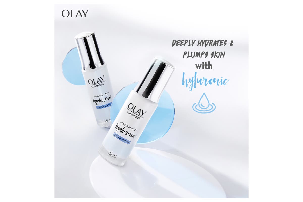 The Olay Luminous Niacinamide+ Hyaluronic Super Serum’s concentrated formula is non- greasy and absorbs quickly while penetrating 10 skin surface layers deep to bring out skin’s dewy glow from within. It is suitable for those with dry or dehydrated skin.