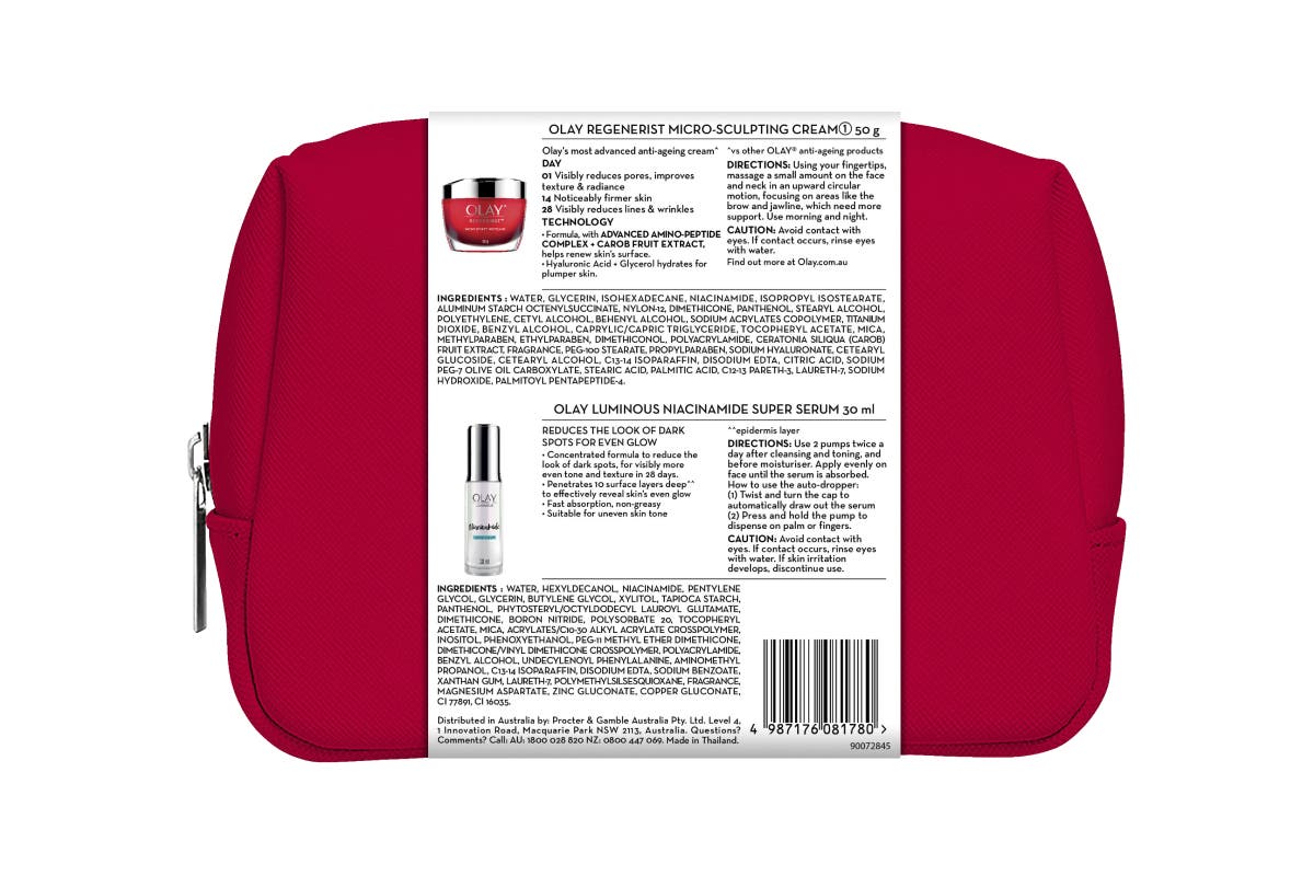 Take good care of your skin with the Olay Regenerist Micro-Sculpting Cream + Olay Luminous Niacinamide Super Serum.