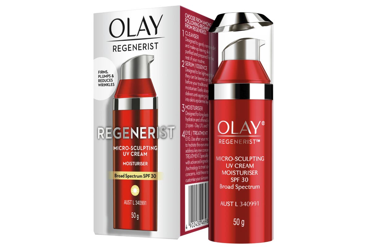 The Olay Regenerist Micro Sculpting UV Cream SPF30 has new anti-ageing formula that hydrates to help rebuild cellular surface structure and restore firmness, regenerating a more youthful appearance SPF 30 helps block direct DNA damaging rays to help protect skin and maintain collagen’s structural integrity.