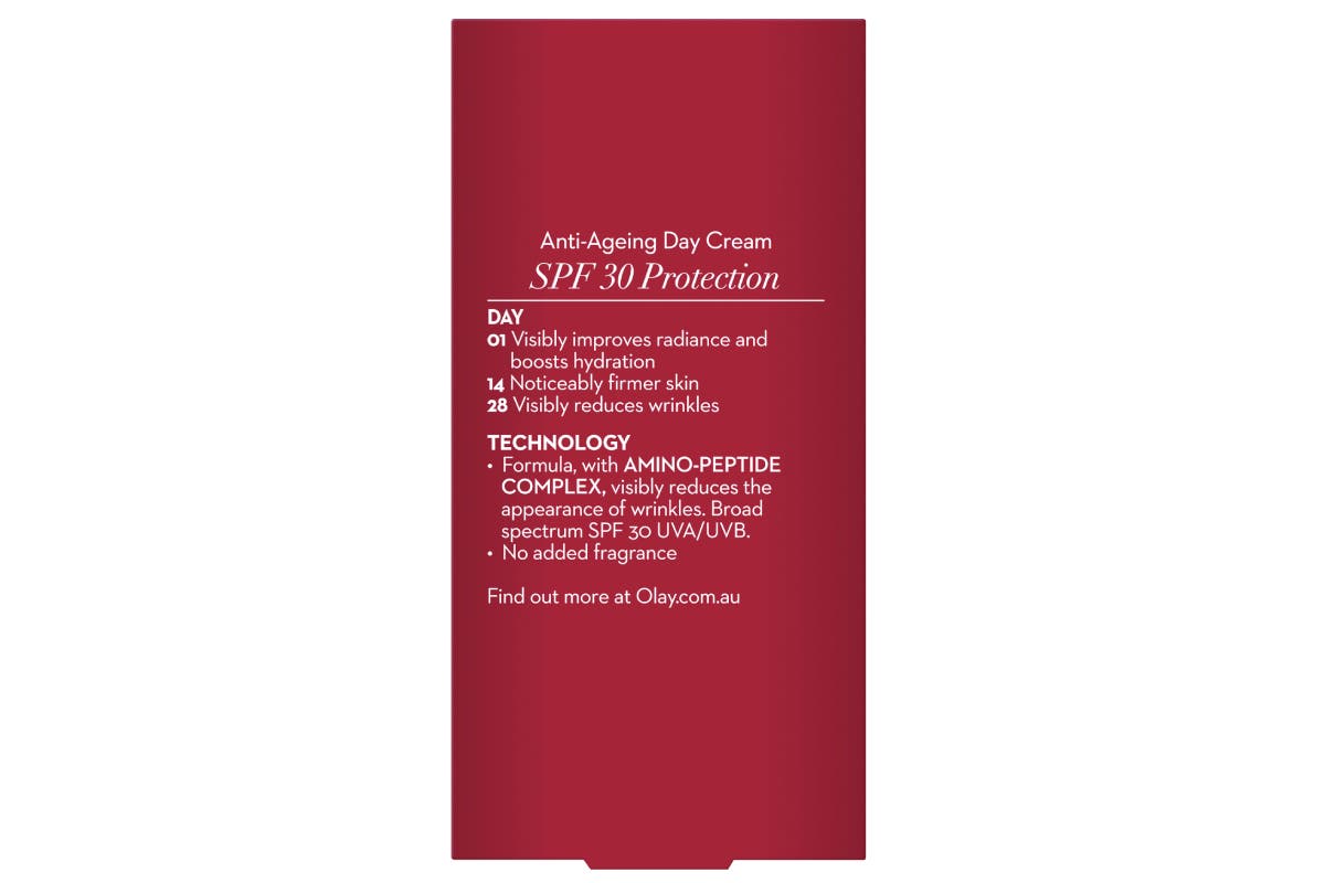 Broad spectrum SPF 30 that protects against UVA/UVB rays to help prevent skin ageing from sun exposure. Formula with most concentrated Amino-peptide Complex helps renew skin’s surface cells. Formula with Hydra-Firming Complex helps retain skin’s youthful look.
