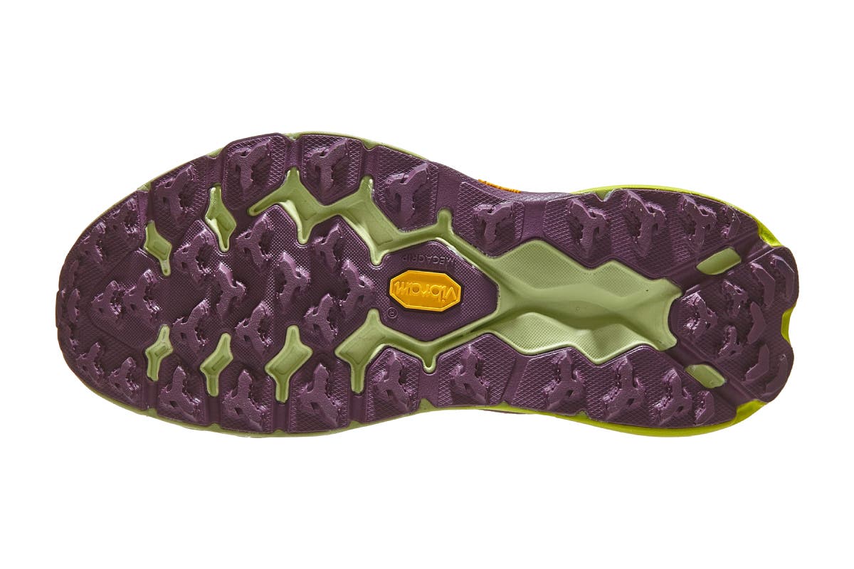 New shoes from outsole to laces, Hoka One One Women’s Speedgoat 5 Running Shoes are updated with Vibram megagrip with traction lug for enhanced grip on loose soil. Retaining the same stack height and rocker profile, Speedgoat 5 Running Shoes employ a lighter midsole compound and heartier, double layer jacquard mesh to inspire confidence on any terrain.