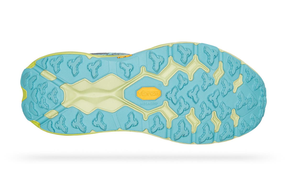 New shoes from outsole to laces, Hoka One One Women’s Speedgoat 5 Running Shoes are updated with Vibram megagrip with traction lug for enhanced grip on loose soil. Retaining the same stack height and rocker profile, Speedgoat 5 Running Shoes employ a lighter midsole compound and heartier, double layer jacquard mesh to inspire confidence on any terrain.