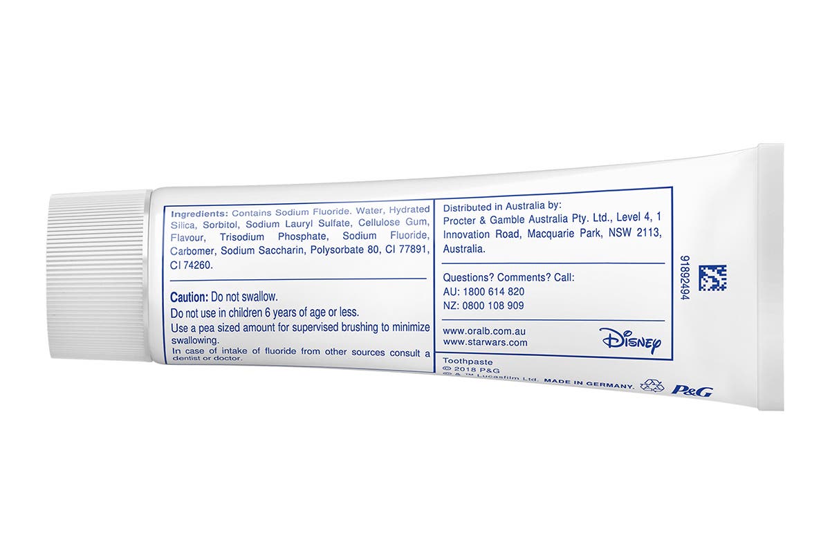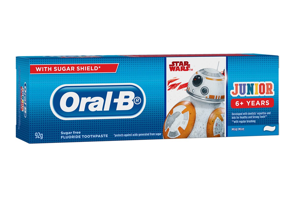 The Oral-B Junior Paste Star Wars Toothpaste is specially designed to protect teeth against acids from sugars in everyday food. For healthy and strong teeth, this sugar free toothpaste with mild mint is specially designed for grown-up juniors.