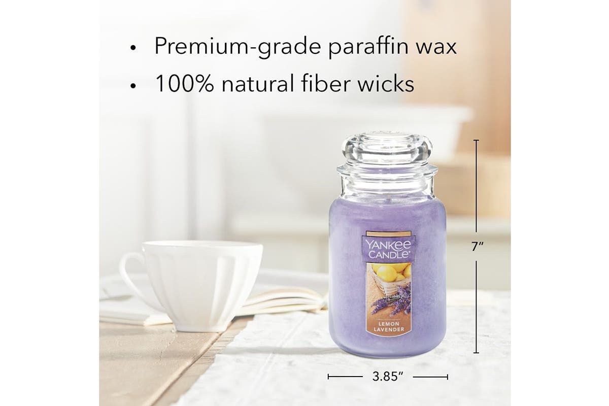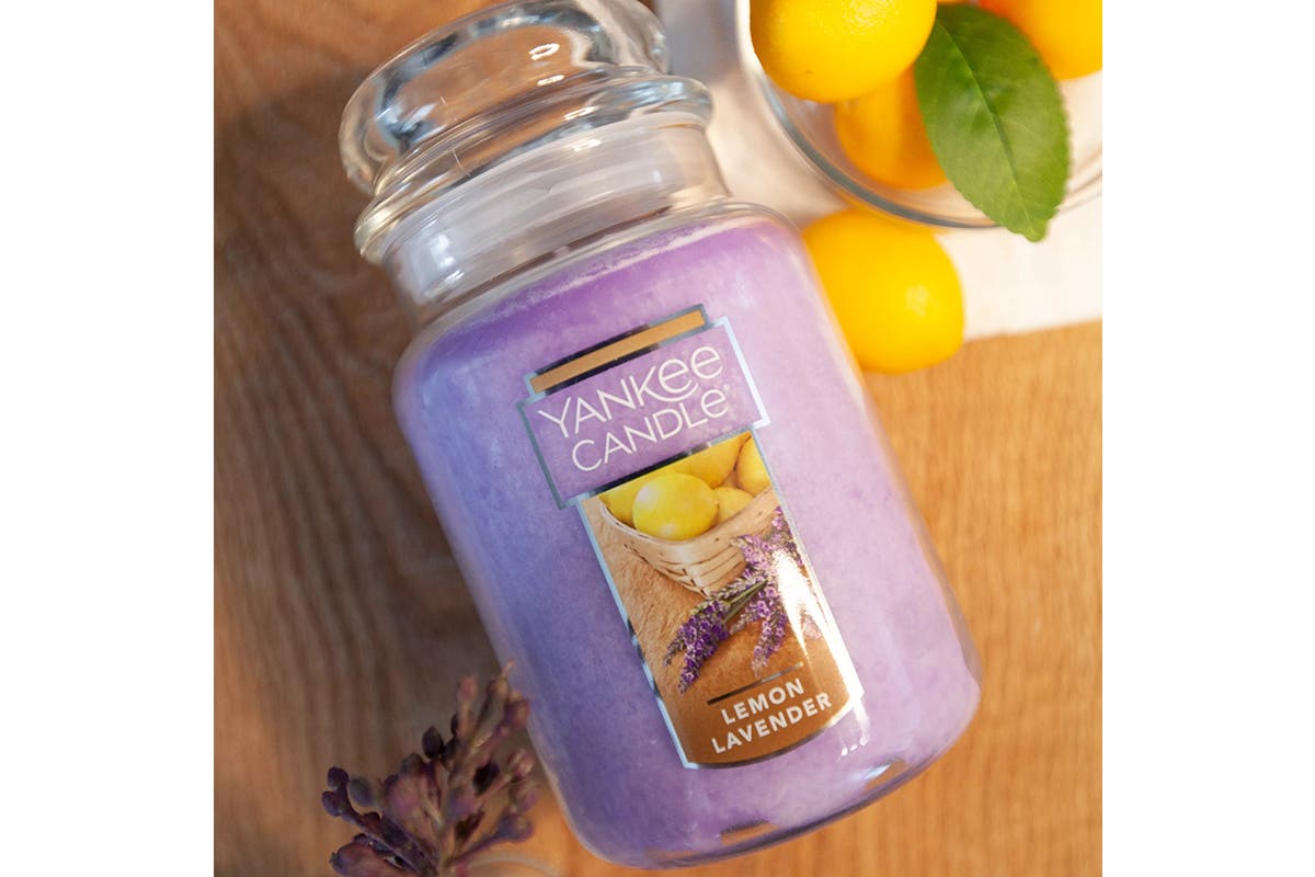 Clean and inviting, the Yankee Original Large Jar Candle – Lemon Lavender has a powdery fresh blend of tangy lemon citrus and sweet lavender flowers.