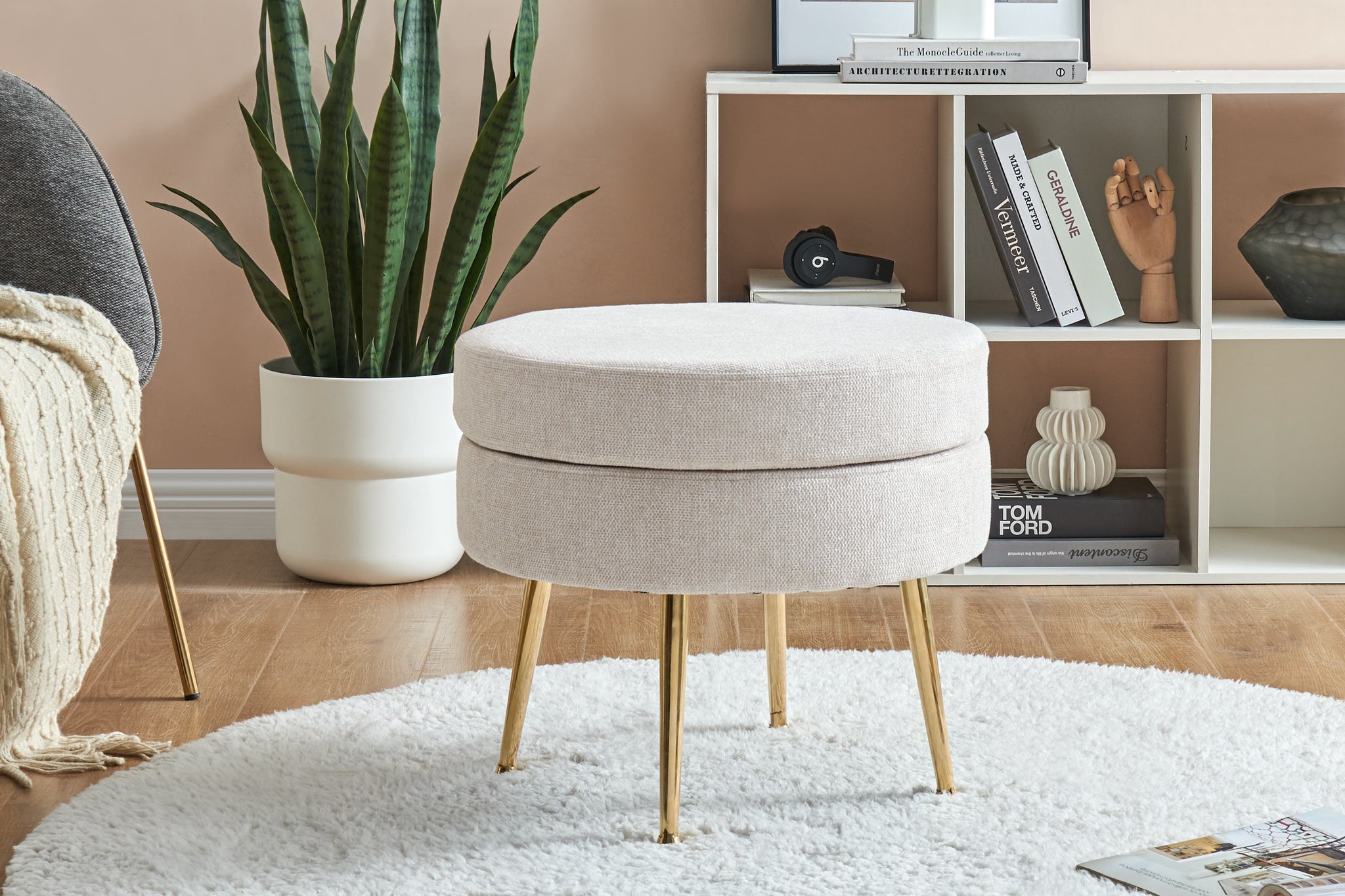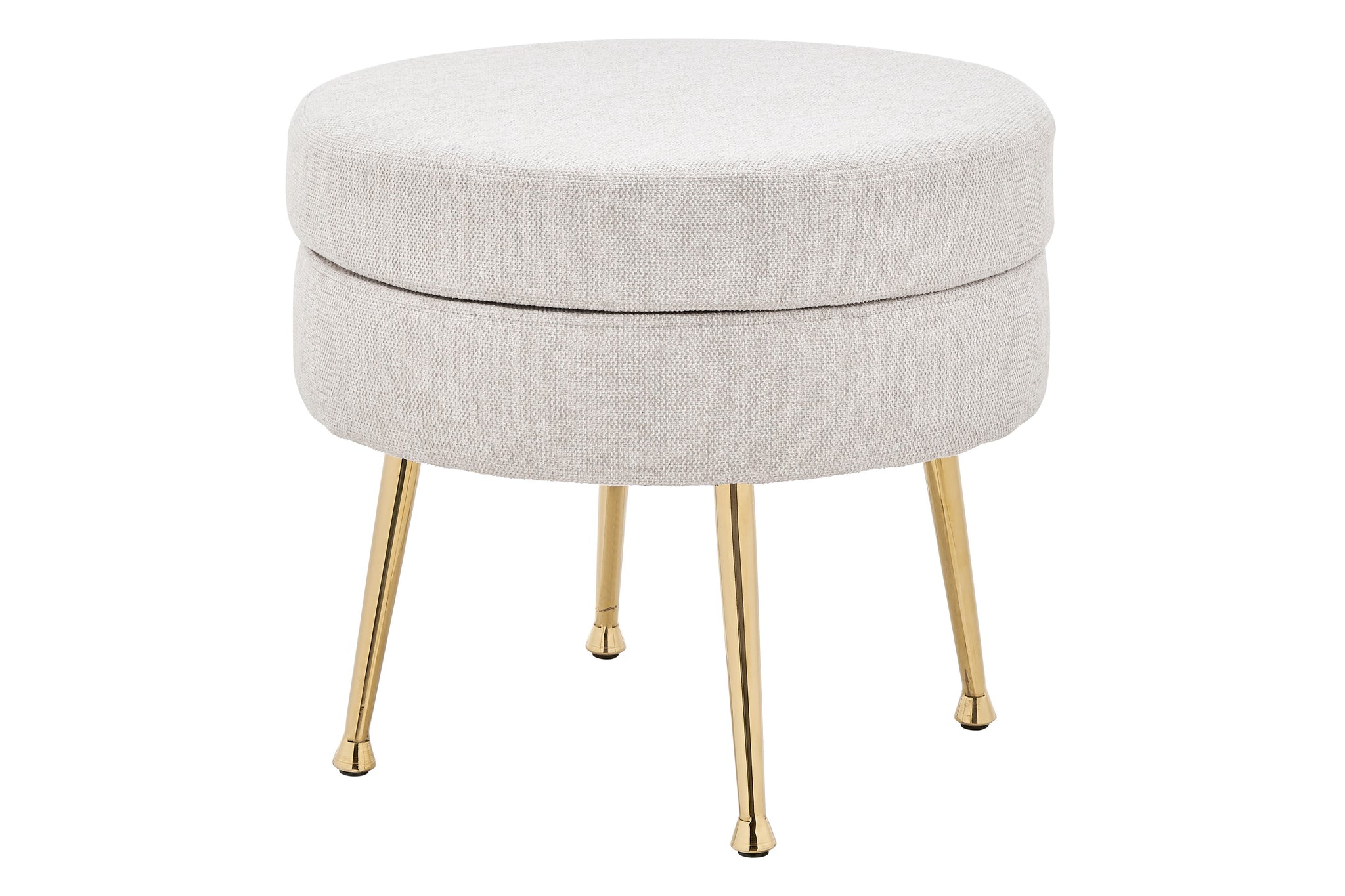 With elegant linen upholstery and gilded legs, this small ottoman exudes elegance and regal style that will elevate the look of your home to high-end levels.