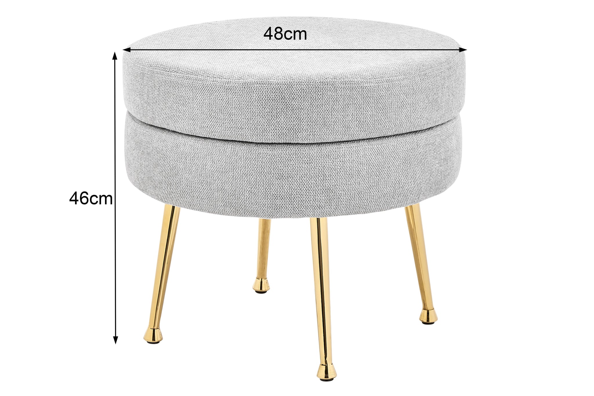 With elegant linen upholstery and gilded legs, this small ottoman exudes elegance and regal style that will elevate the look of your home to high-end levels.