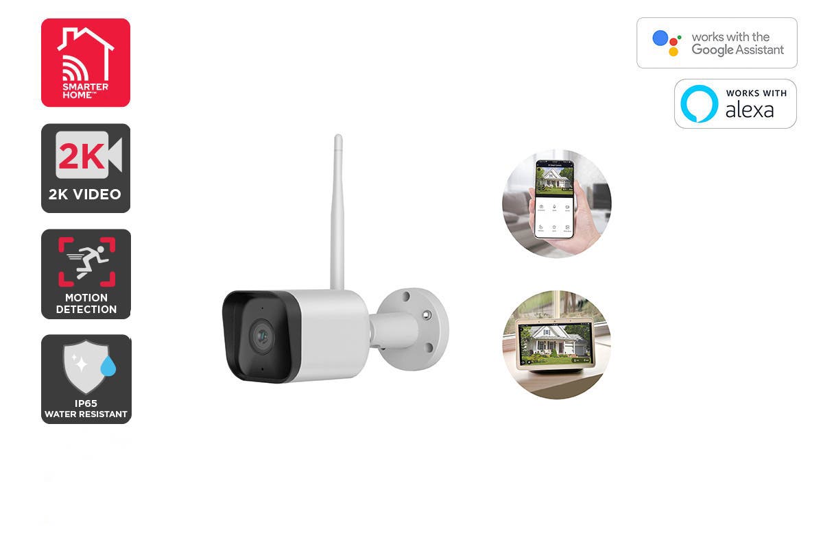 Install the Kogan SmarterHome™ Outdoor 2K Security Camera to keep your home and family safe throughout the day and night using the AI motion capture with instant detection alert and IR LED night visibility.