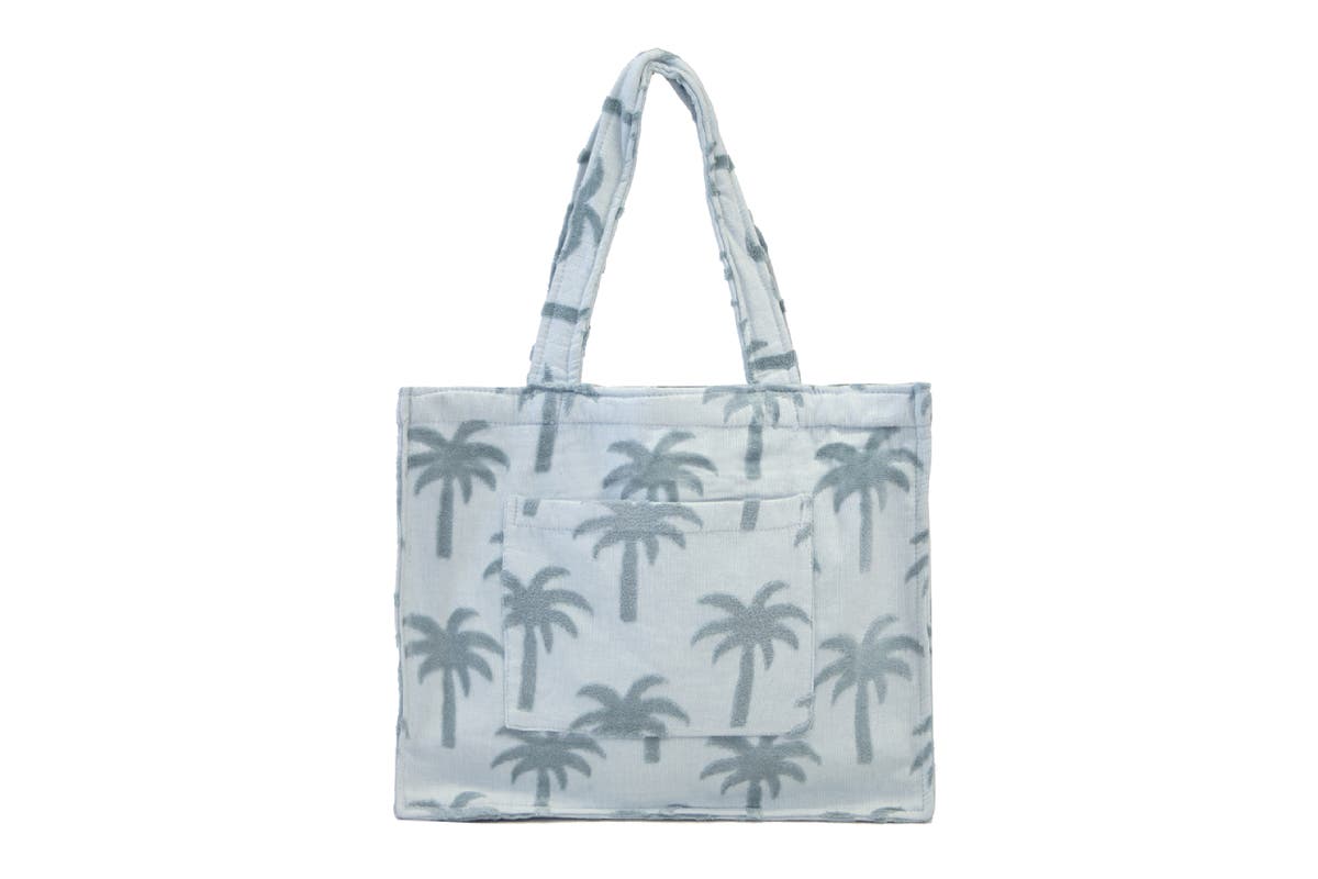 The Bambury Palm Bag features a gorgeous palm tree pattern made using a high-low pile technique. The large bag is light-weight and easy to wash, with a pocket at the front for some keys or a phone.