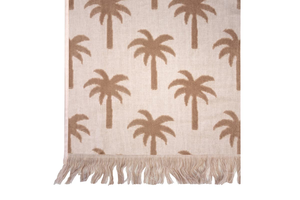 The Bambury Palm Towel is an ideal accessory for the beach or pool. It features a palm tree pattern that is made using a high-low pile technique, as well as playful knotted tassels along both ends.