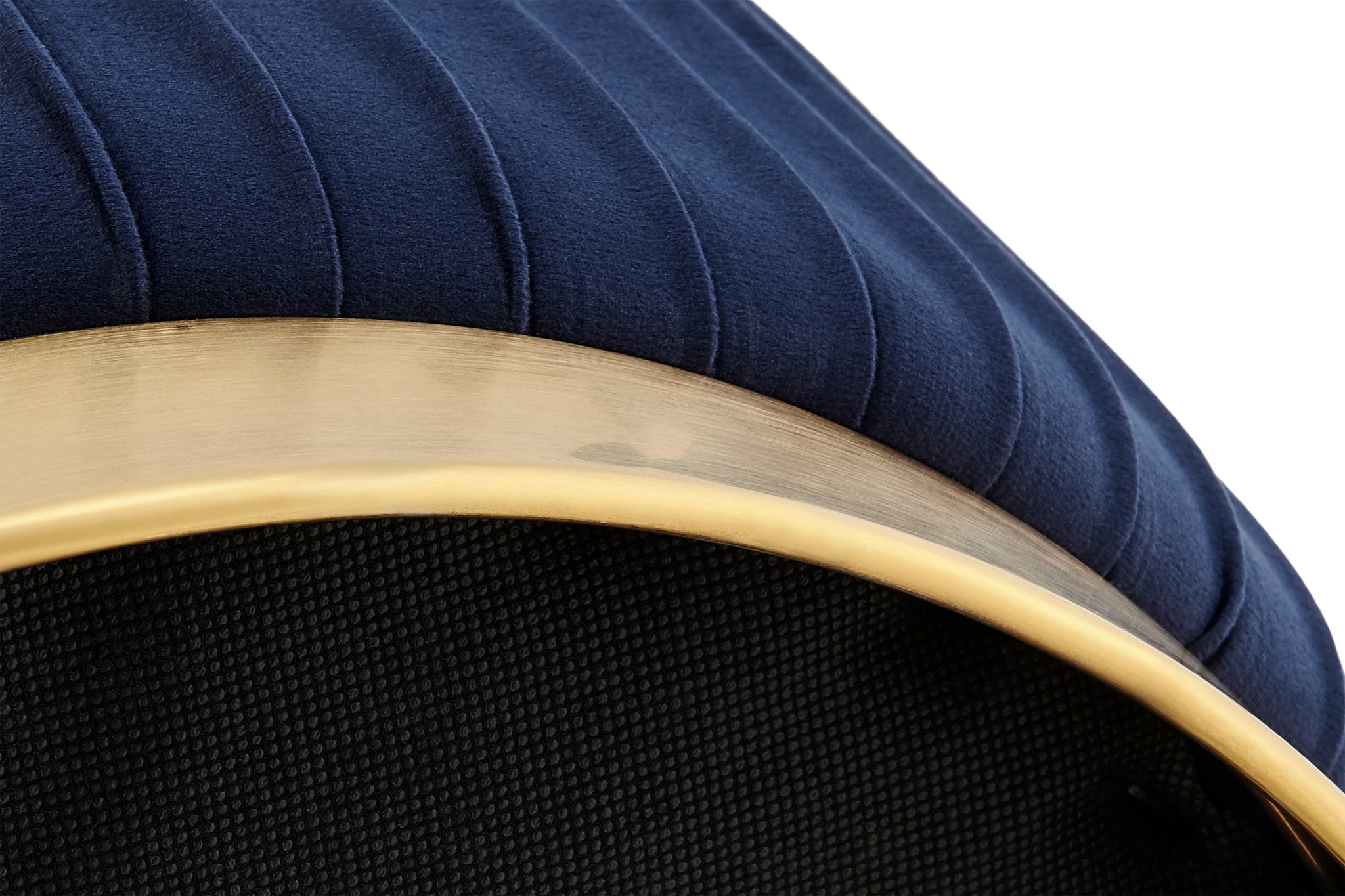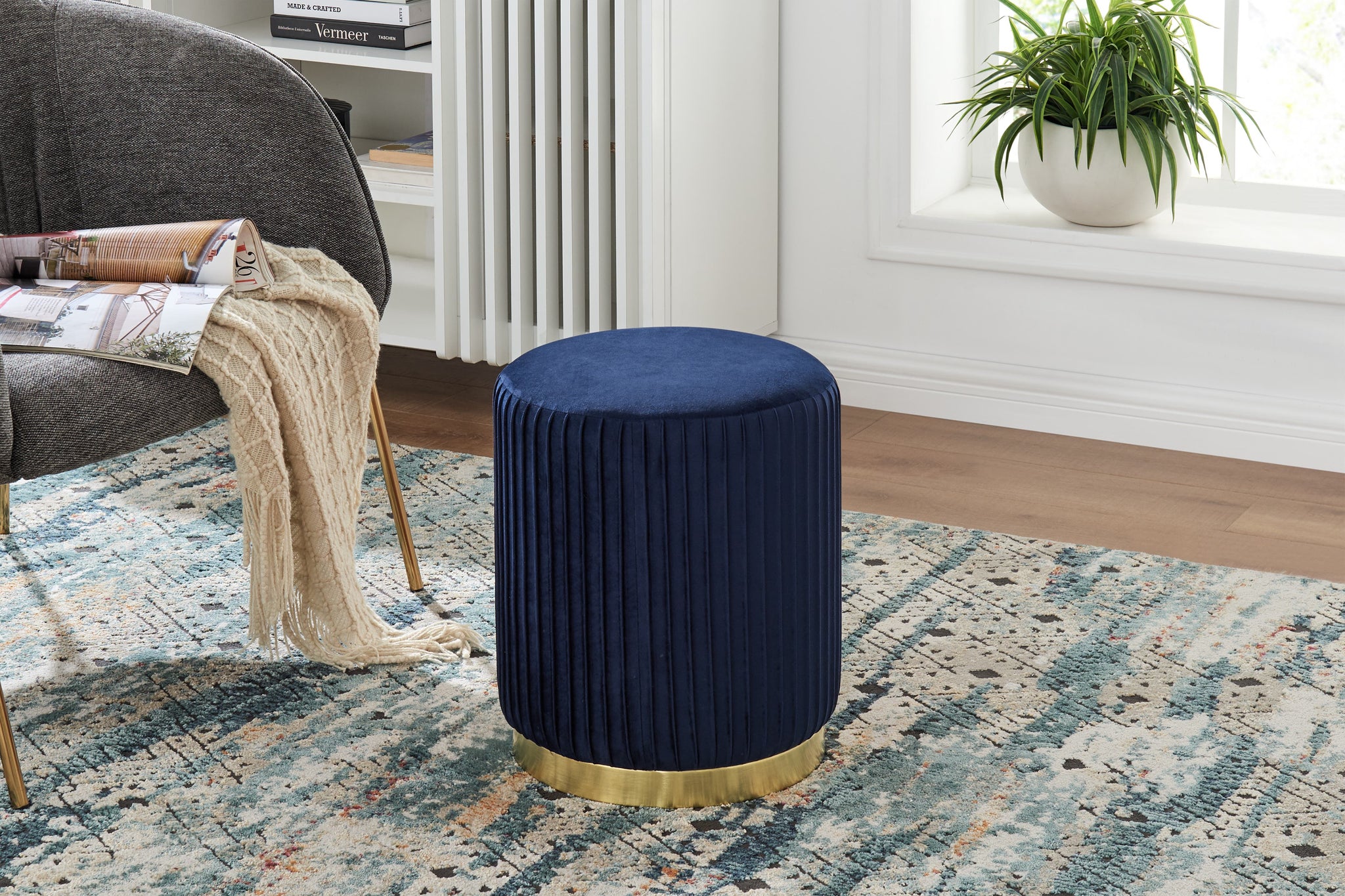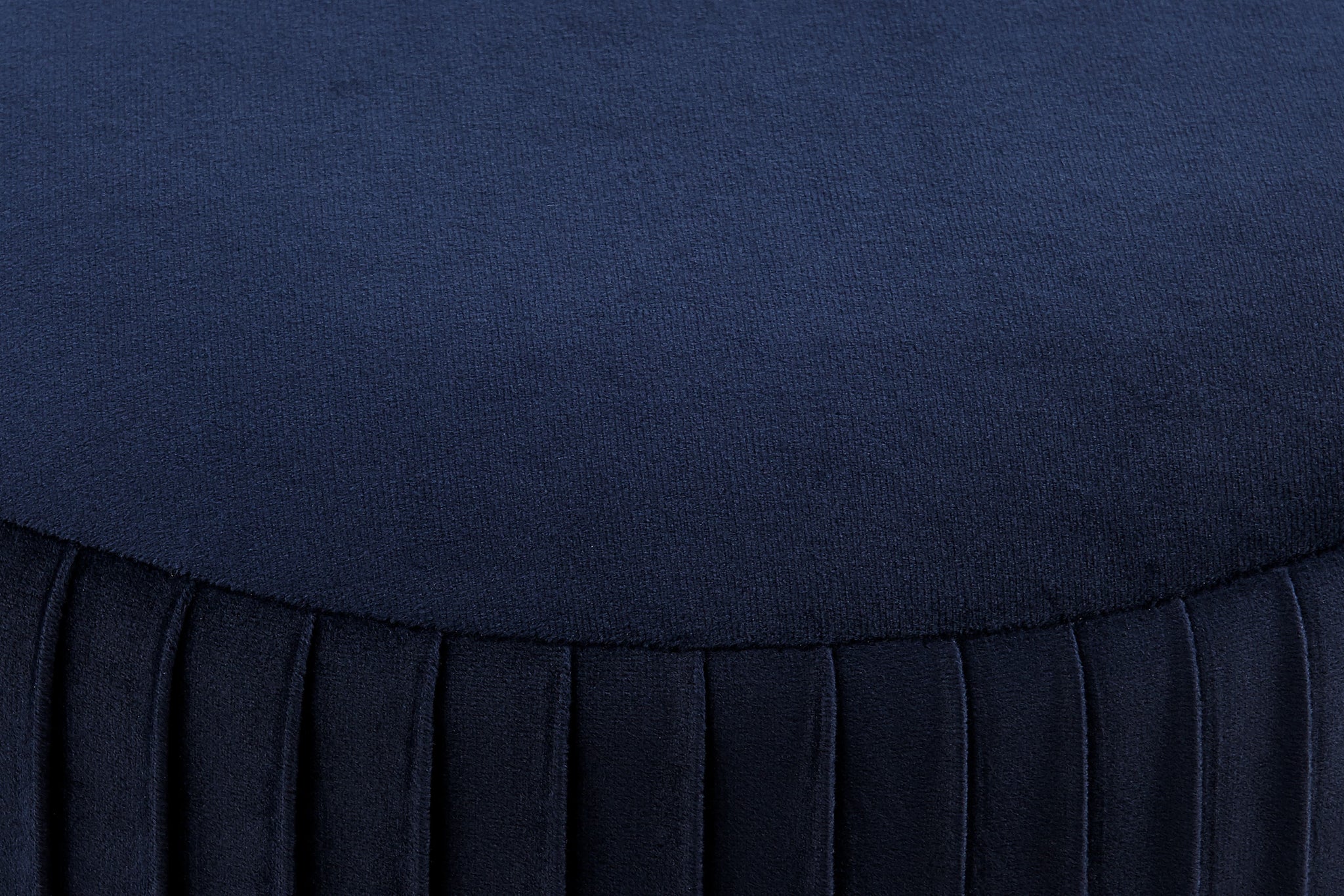 Make your living room feel fancy and refined with the Shangri-La Panama Pleated Ottoman (Navy) that boasts a luxurious pleated design and elegant velvet upholstery to elevate the feel of your home.