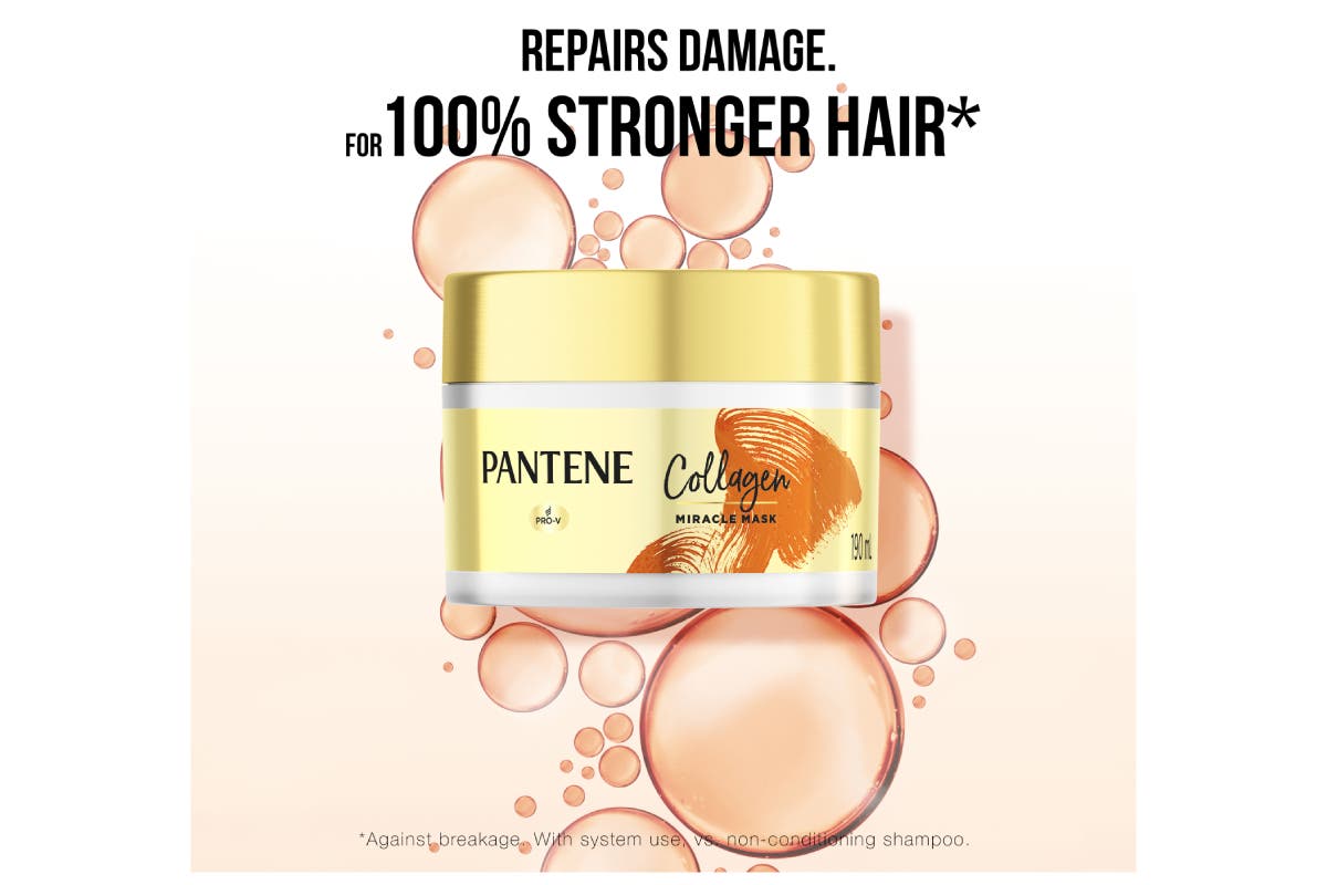 The Pantene Pro-V Intense Miracle Hair Mask Treatment: Collagen Repair’s nourishing boost repairs hair damage in 5 minutes. This reconstructing, nourishing weekly hair mask helps transform weak, damaged hair into strong, smooth tresses that lasts all day long.