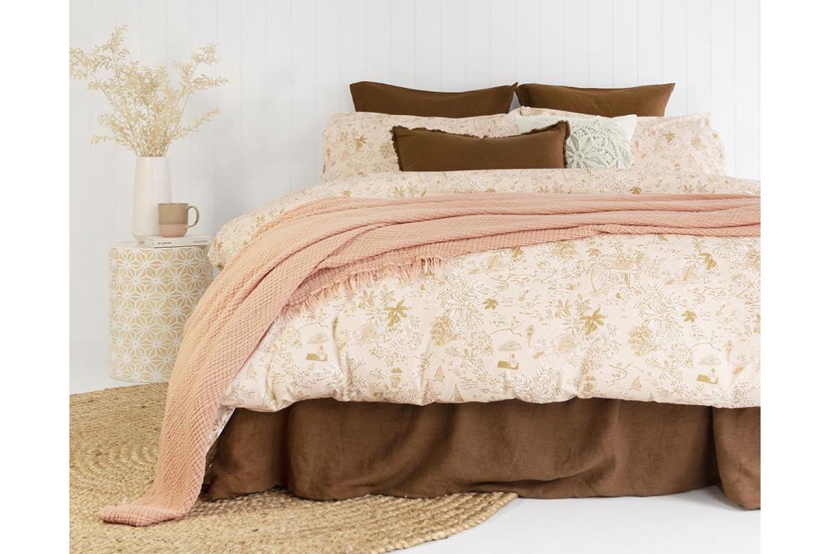 Hand drawn and digitally printed onto 100% enzyme-washed cotton, the Bambury Paradise Quilt Cover Set – Queen will have you falling asleep to dreams of your next tropical island holiday. Featuring an on-trend colour palette, the Paradise design can also be flipped over to create a whole new look with a different version of the same print on the reverse.