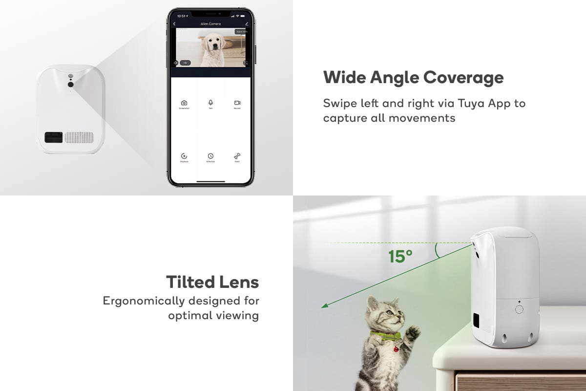 This treat dispenser comes with a high-quality streaming camera, which allows you to watch your pets wander about the house when you’re not home. Screenshot, record, and view photo albums on your smart device with the SmarterHome™ app.