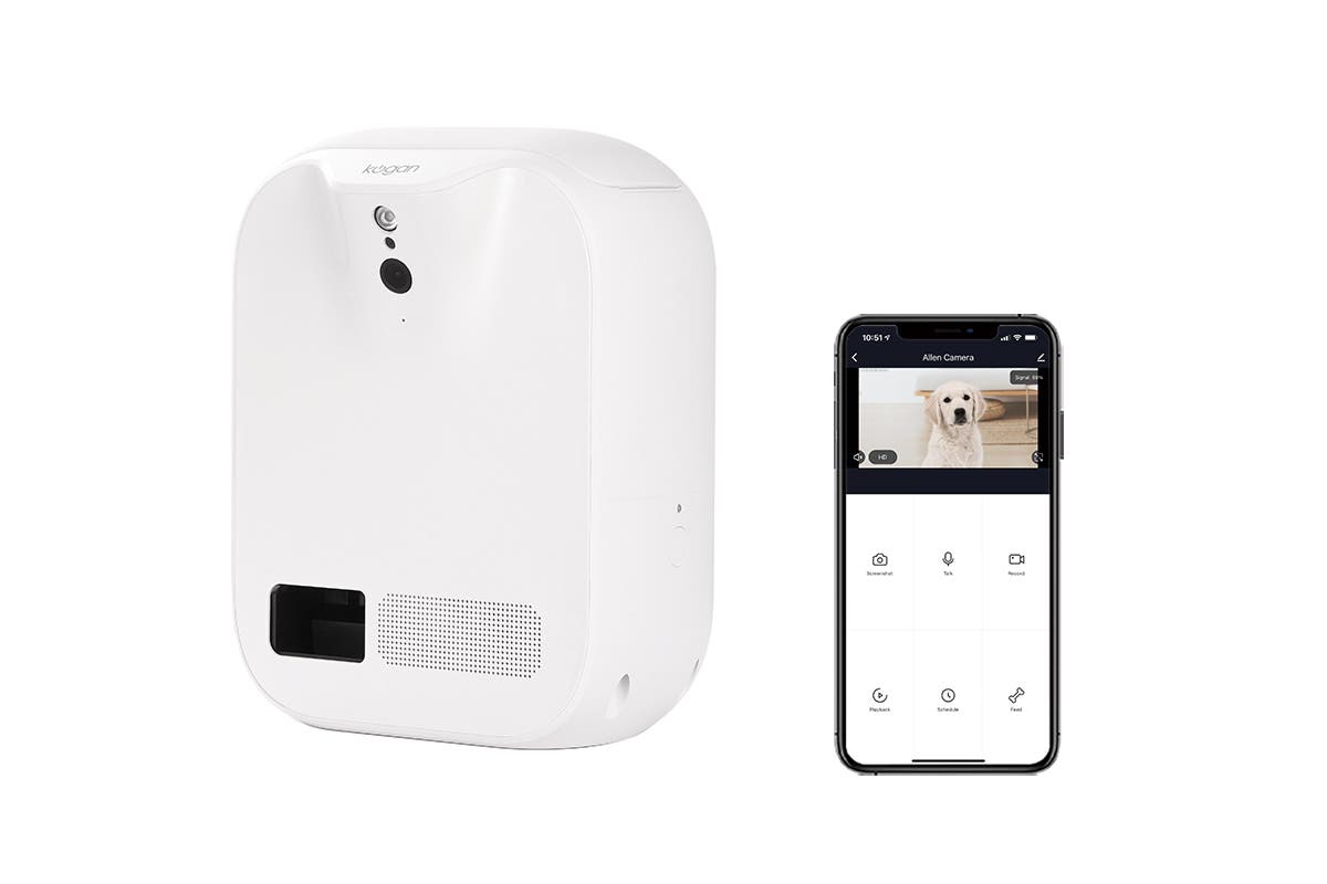 Reward your pets with treats when you’re out of home thanks to the Kogan SmarterHome™ Pet Treat Dispenser HD Camera (White).