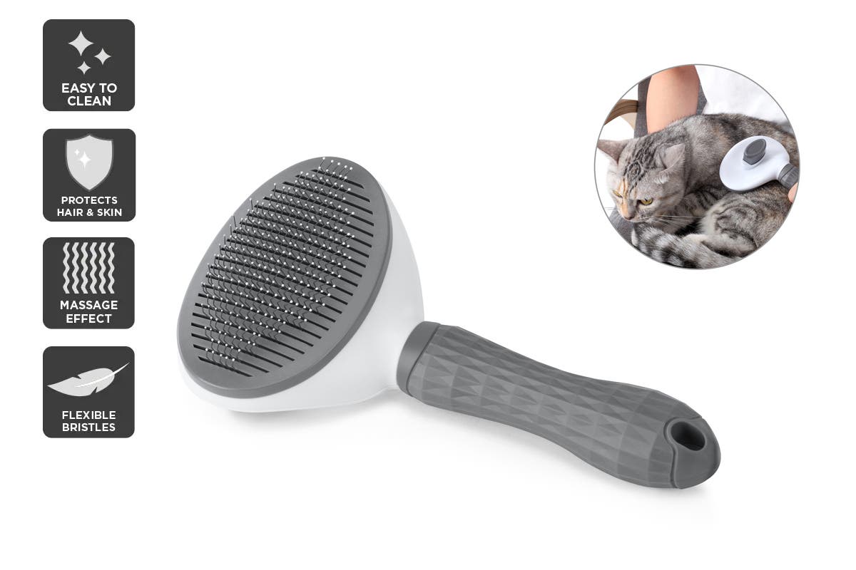 Keep your furry friend’s coat in pristine condition by regularly brushing out tangles and trapped dirt with this useful brush that features a one-click self-cleaning feature to make grooming a breeze.