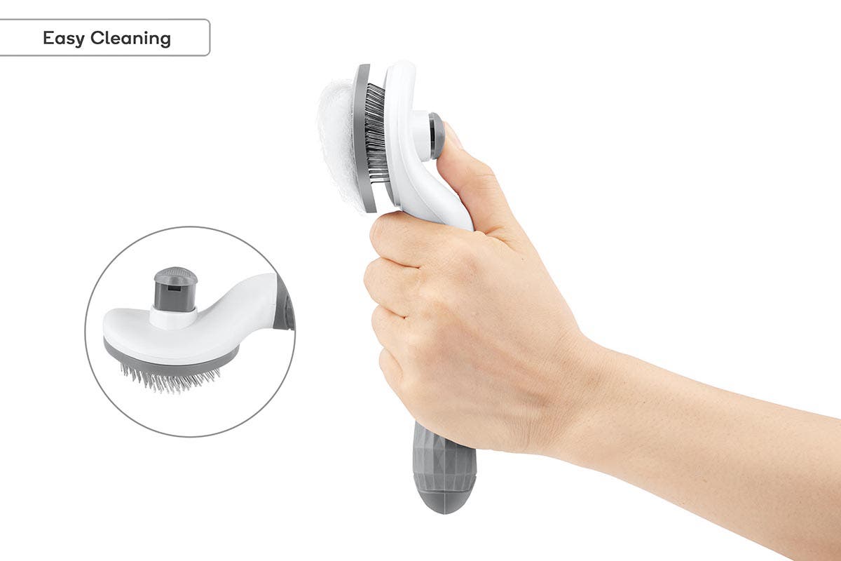 Once you’re done grooming your pet, simply click the button and the bristles will retract into the brush to help you easily remove all of the built-up hair and get the brush ready for your next use.