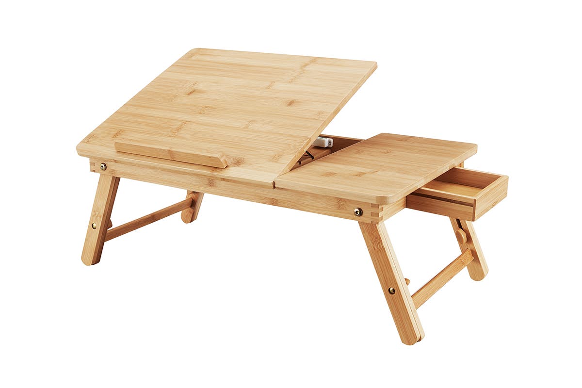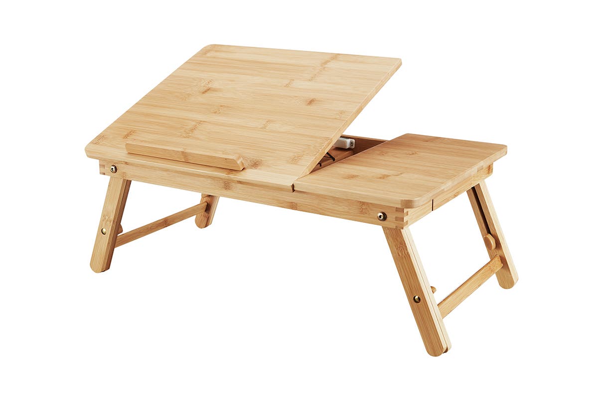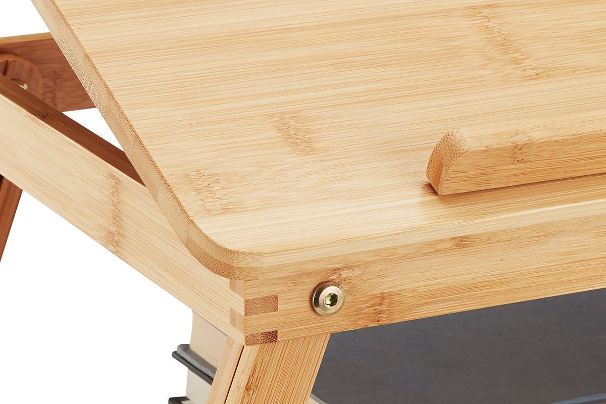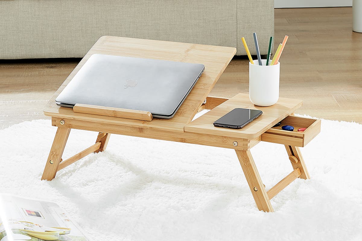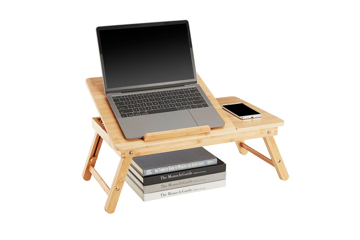 Be productive from the comfort of your bed thanks to this fully functional laptop desk that features an ergonomic tilted desktop, durable bamboo build and portable design.