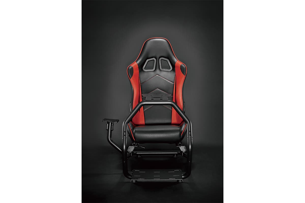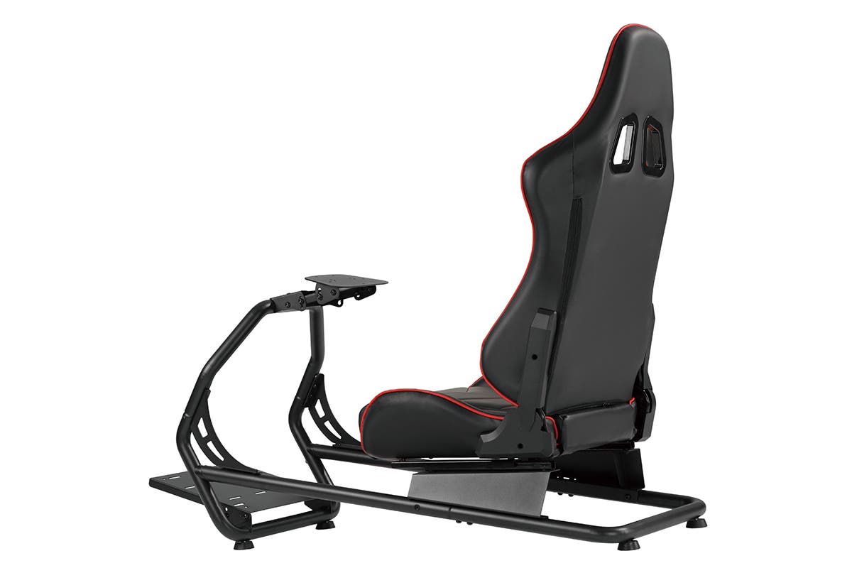 Race into an immersive virtual world with a racing simulator setup that comes with an adjustable racing chair, a panel for pedals and a steering wheel and a gear shift mount that can be fitted on the left or right hand side.