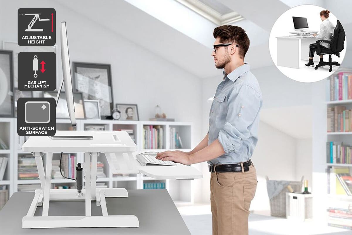 Get the most out of your workday with the Ergolux Pro Height Adjustment Sit Stand Desk Riser, built with a squeezable gas lift to help you seamlessly transition from sitting to standing for ultimate comfort.