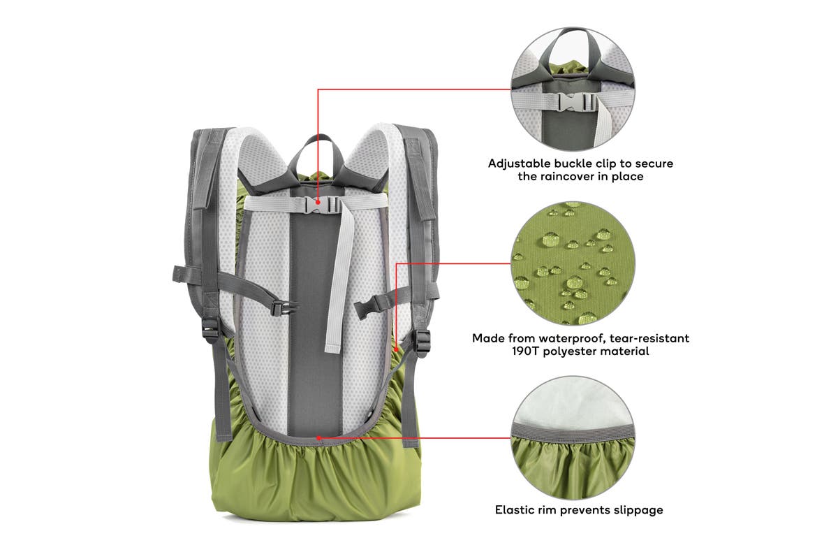 Protect your gear from the rain with a lightweight cover that compacts to a fraction of its size and is fast and easy to put on, with elastic edges that grips firmly to your backpack.