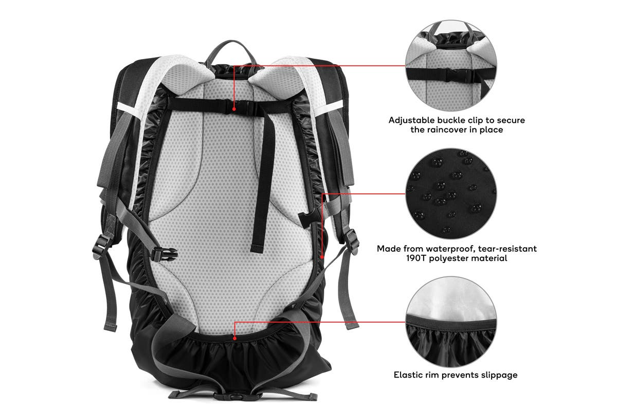 Protect your gear from the rain with a lightweight cover that compacts to a fraction of its size and is fast and easy to put on, with elastic edges that grips firmly to your backpack.