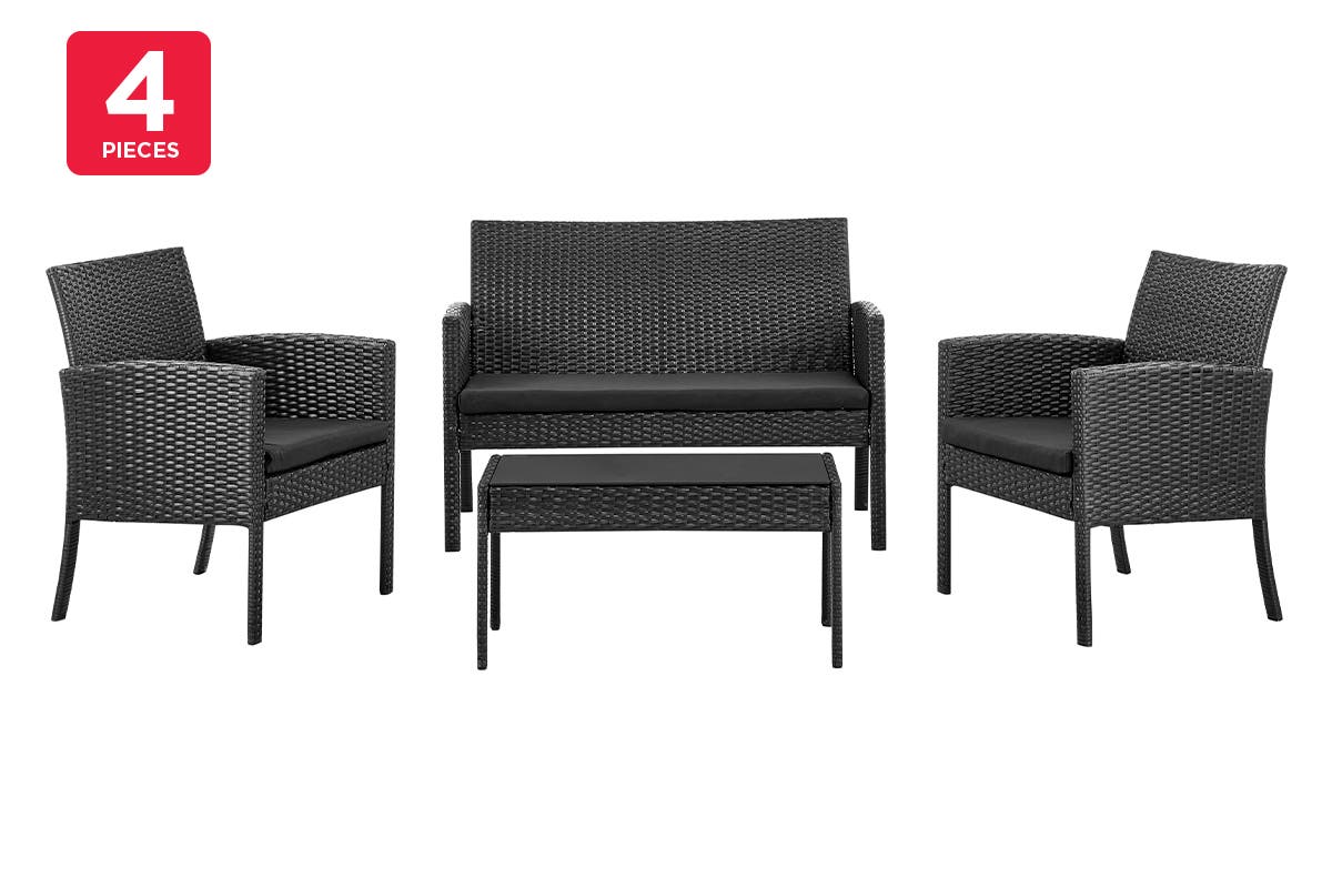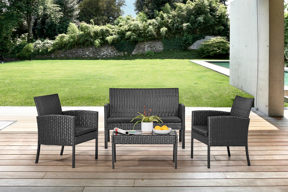 NNEKG Redmond 4 Piece Outdoor Furniture Lounge Set (Black Black)