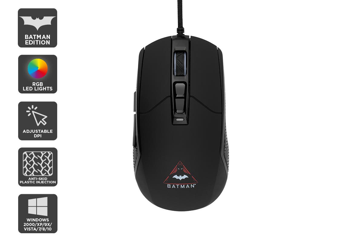 Light up the Dark Knight with a colourful RGB Batman gaming mouse that lets you switch colours and DPI at the click of a button, and features a 1.5m braided cable for free movement.