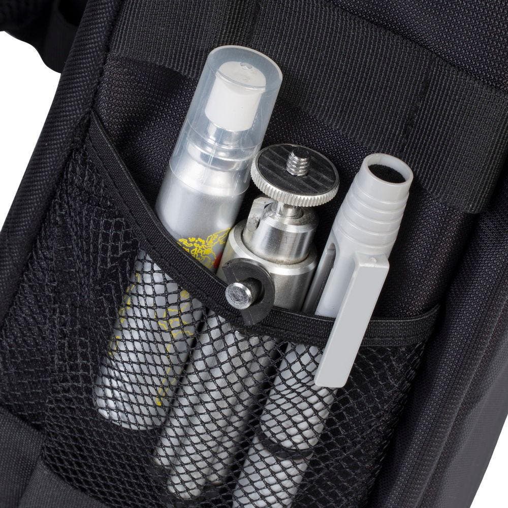 - 2 lenses and a flash unit can be additionally stored using an adjustable inner compartments system