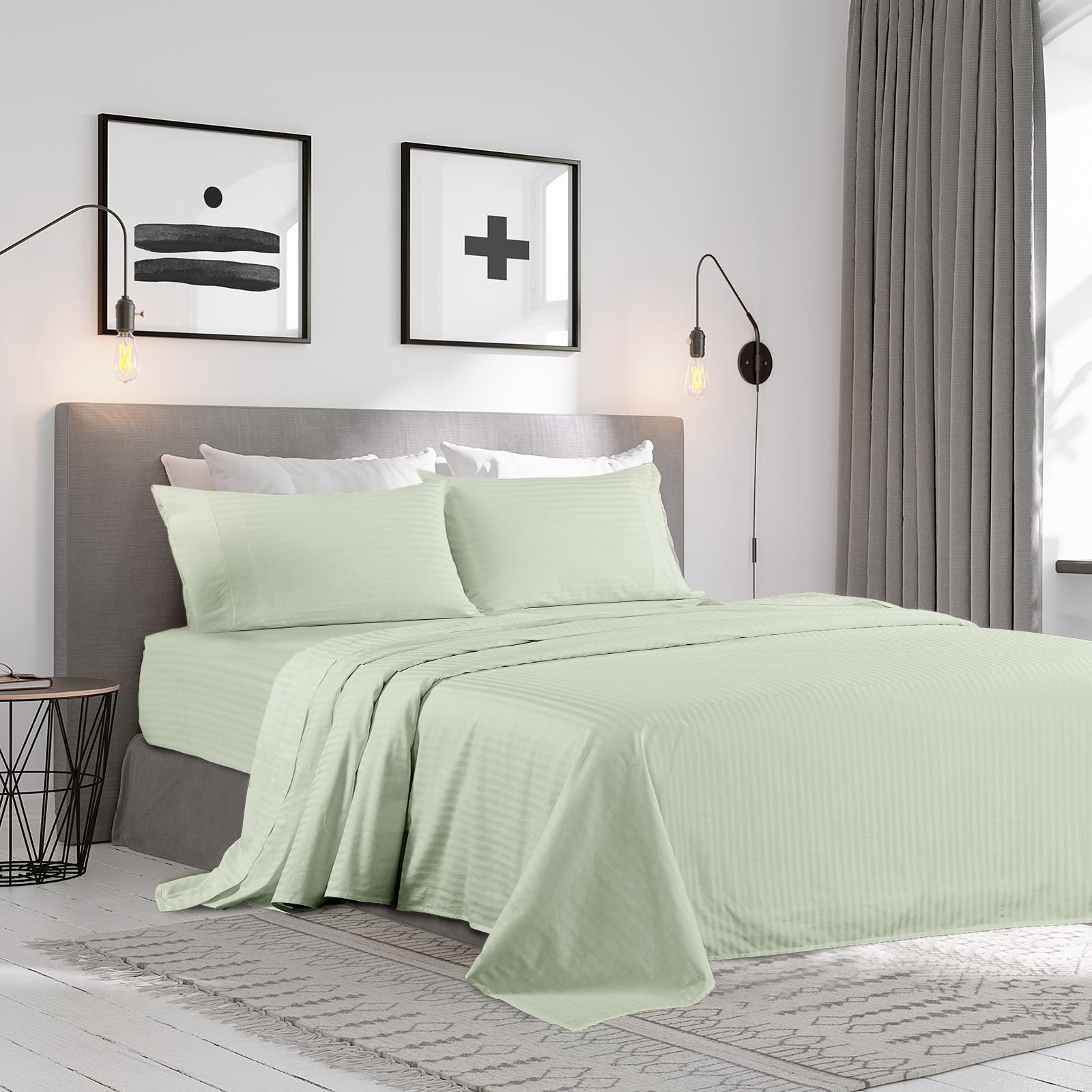 NNEKG Royal Comfort 1200TC 100% Cotton Stripe Bed Sheet Set (King Seafoam Green)